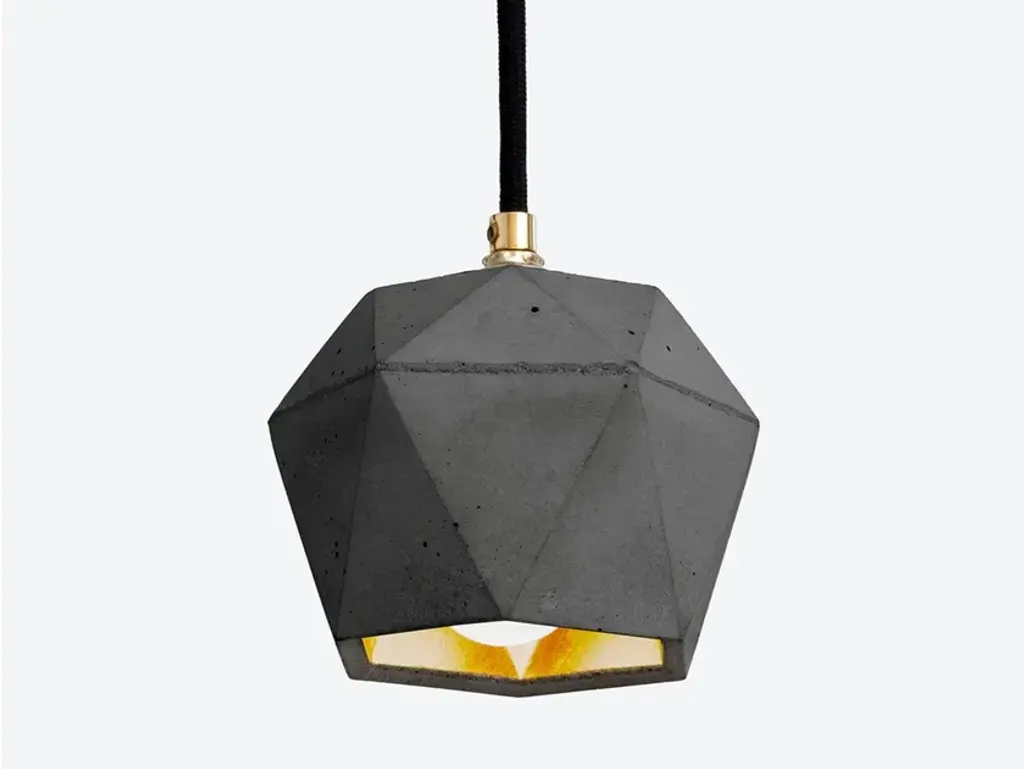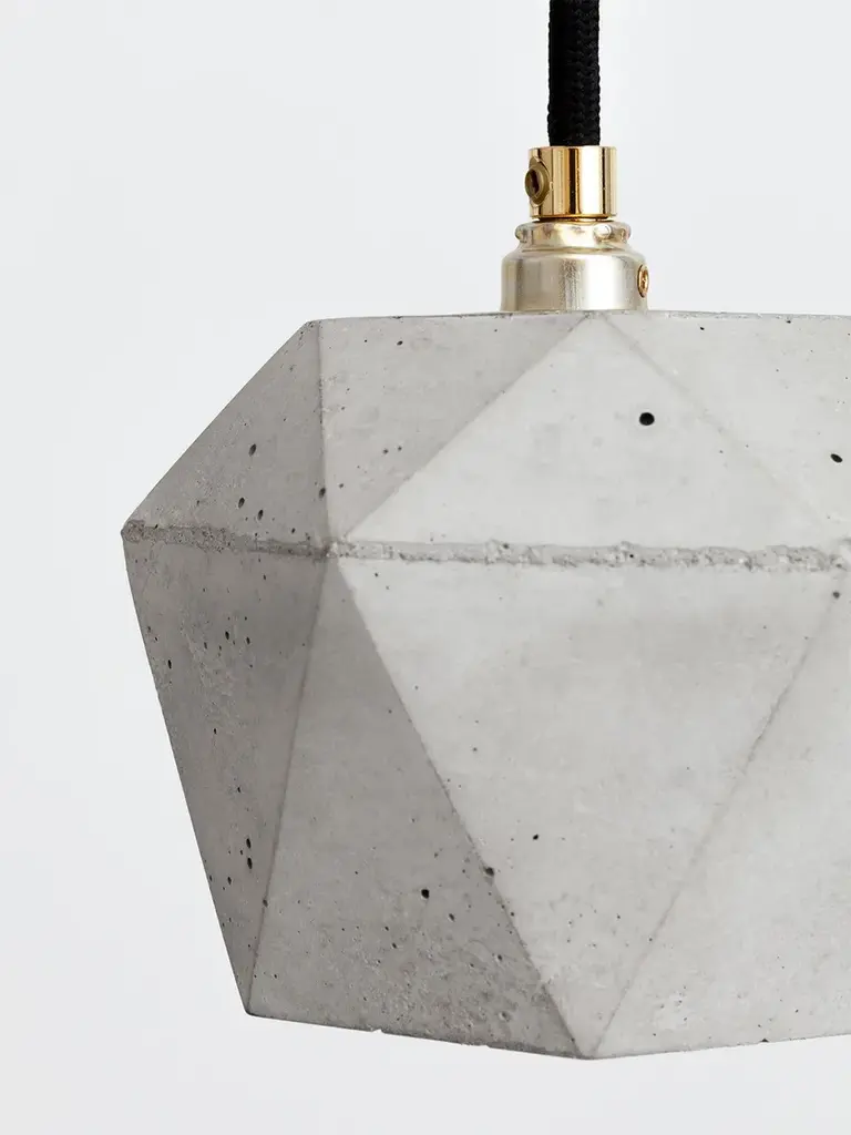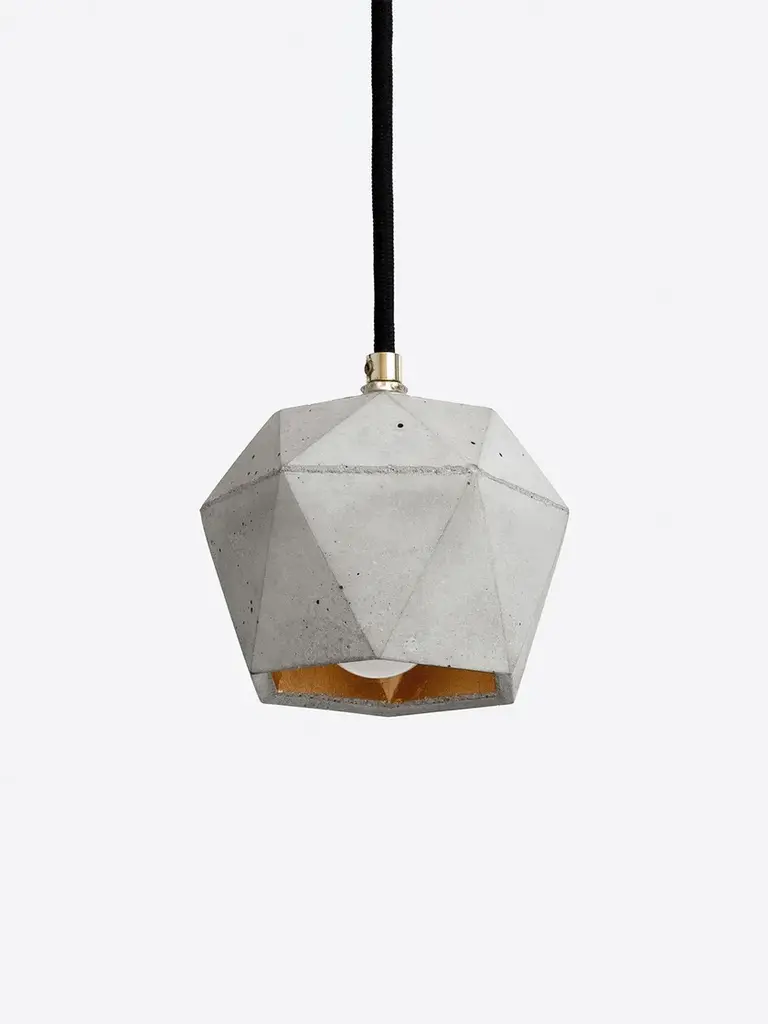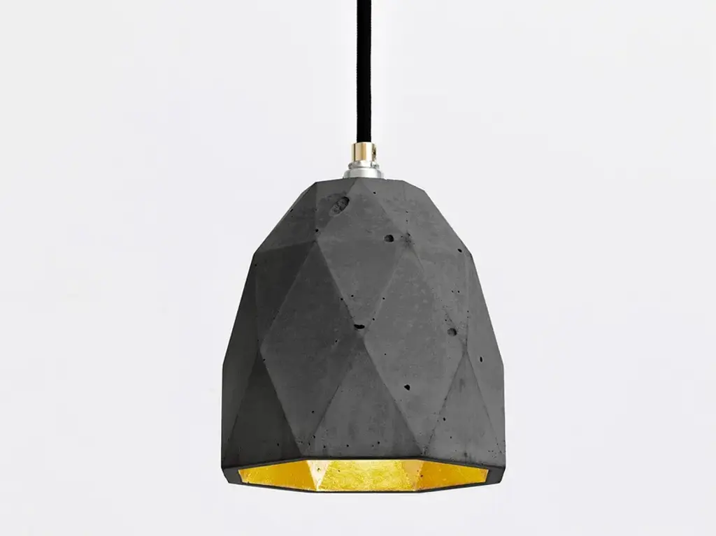 [T2] Bundle Pendant Light Triangle - light grey or dark grey concrete with gold, silver or copper plating on the inside - handmade by GANTlights in Berlin.The set of three lamps can be used solitary as an "eye-catcher" or combined in a series of bundles above a dining table, a sideboard, a desk, or a bar for example. Due to its minimalistic design and the contrasting materials, the lamp is modern and timeless at the same time and can therefore be combined with any style.Included: The handmade lamp shade is delivered ready to install with E14 brass mounts, cable restraints, 1.8m / 3m / 5m of black / white / grey textile cable, mounting hardware and black canopy.Watts / beam angle: 40W / 110°The lamp requires three E14 bulbs (please note that bulbs are not included).