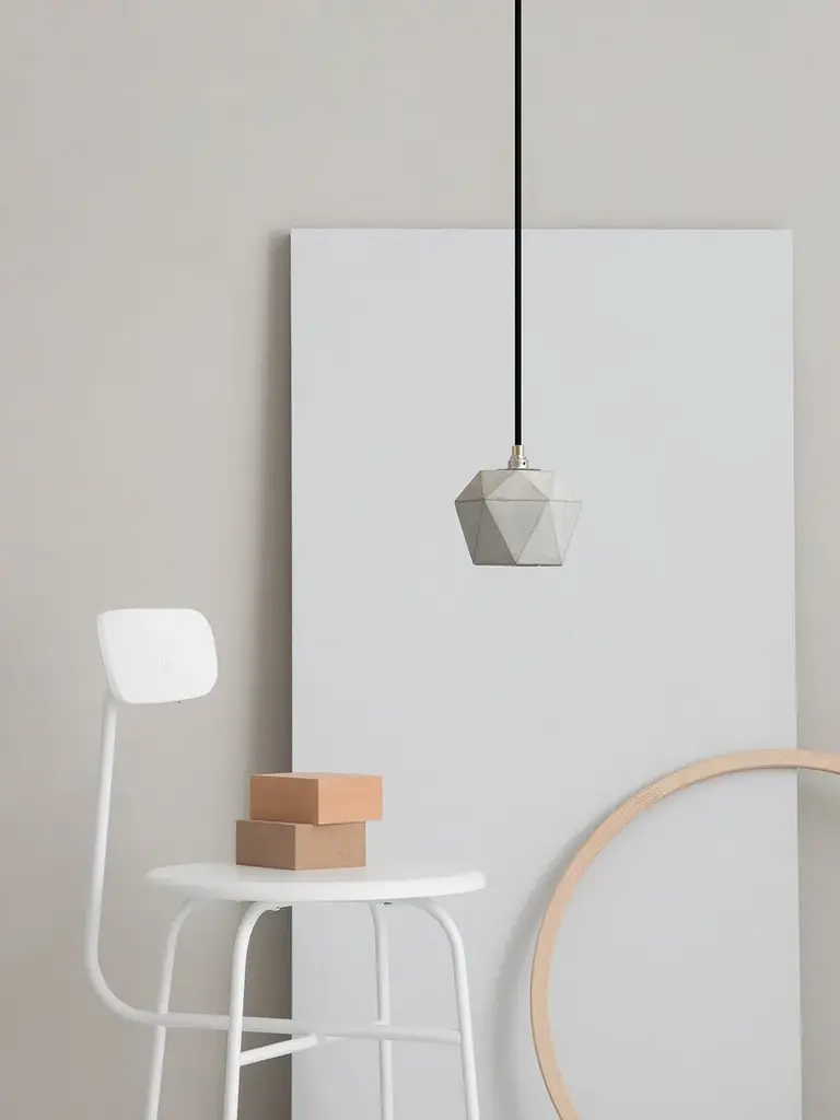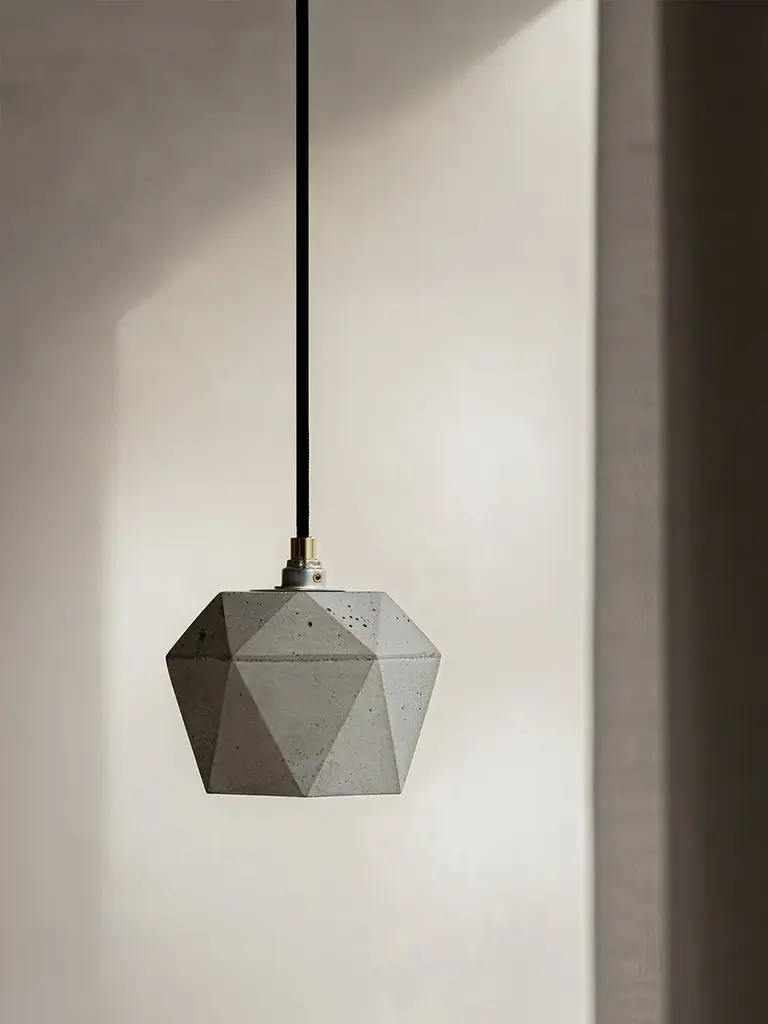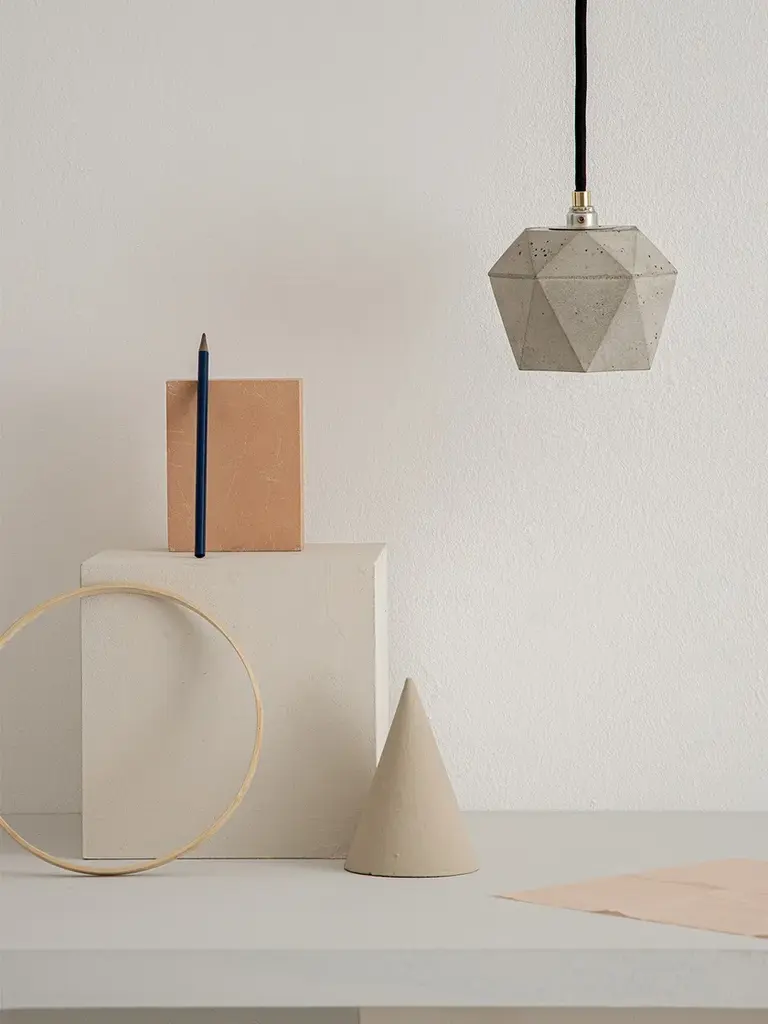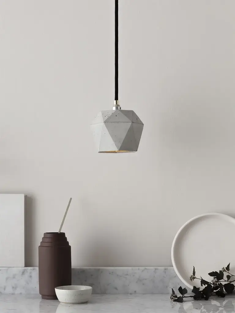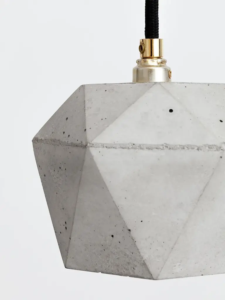 [T2] Pendant Light Triangle - light grey concrete with gold, silver or copper plating on the inside - handmade by GANTlights in Berlin.The lamp can be used solitary as an "eye-catcher" or combined in a series above a dining table, a sideboard, a desk, or a bar for example. Due to its minimalistic design and the contrasting materials, the lamp is modern and timeless at the same time and can therefore be combined with any style.Included: The handmade lamp shade is delivered ready to install with an E14 brass mount, cable restraints, 1.8m / 3m / 5m of black / white / grey textile cable, mounting hardware and black canopy.Watts / beam angle: 40W / 110°The lamp requires an E14 bulb (please note that the bulb is not included).