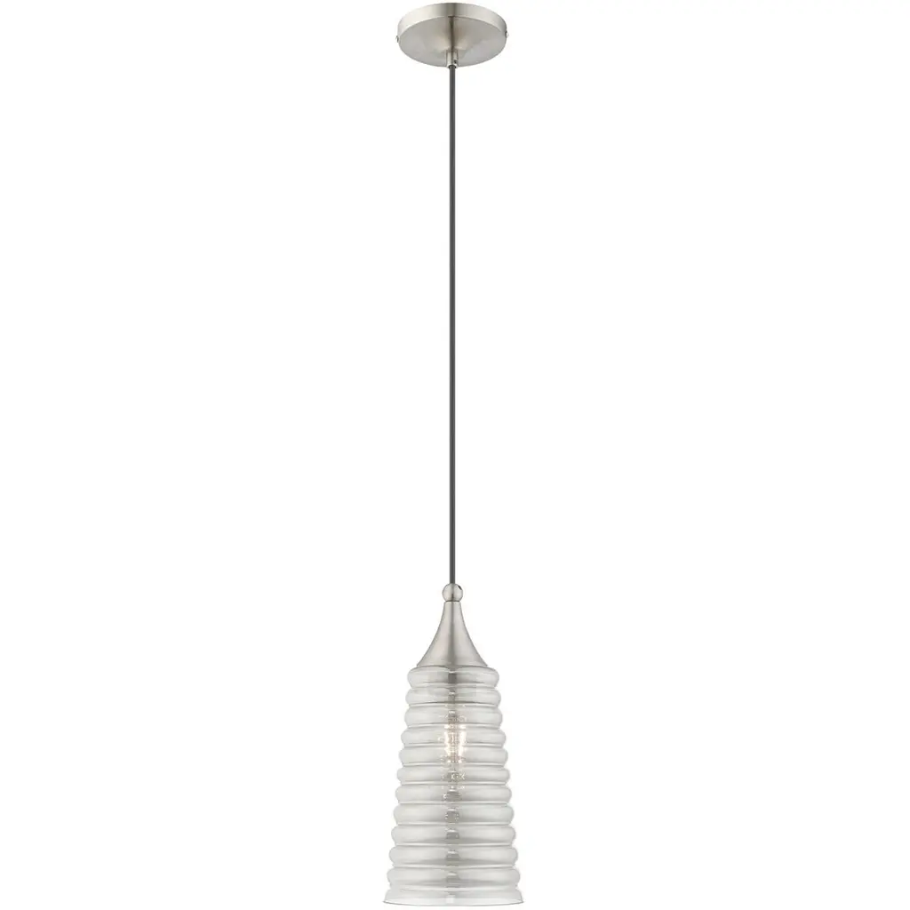 Tabulo Pendant-Beige Silver-Tidal Cast Glass-Threaded Rod Suspension-LED 3000K