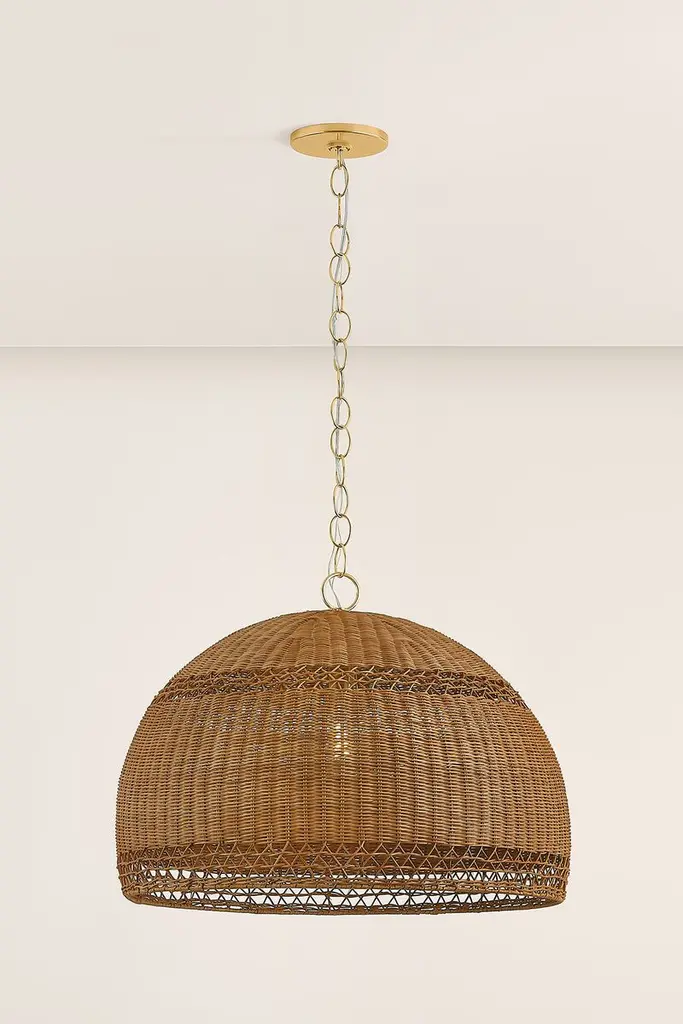 Taelynn Pendant, Aged Brass/light Natural Wicker