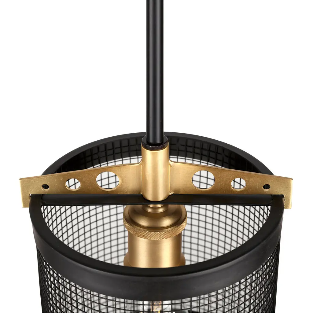 1-Light Black and Soft Gold Wire Mesh Industrial Mini Pendant with Metal Mesh Shade