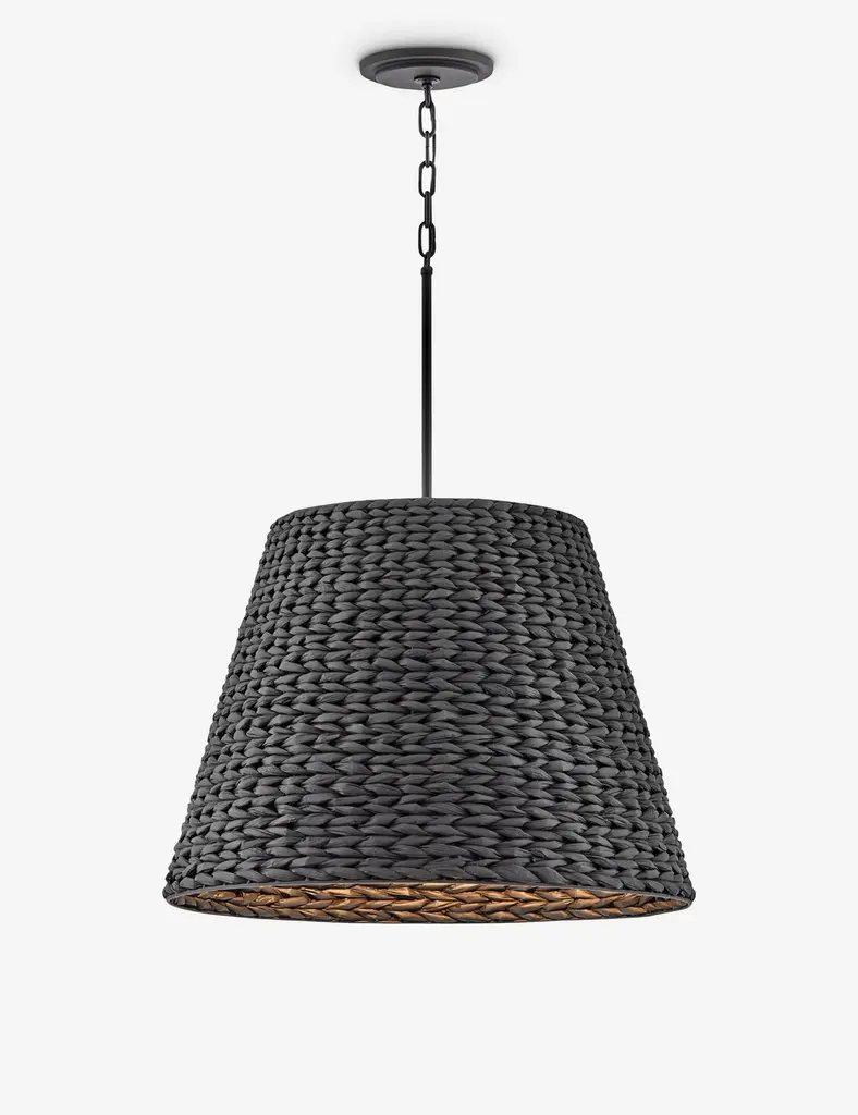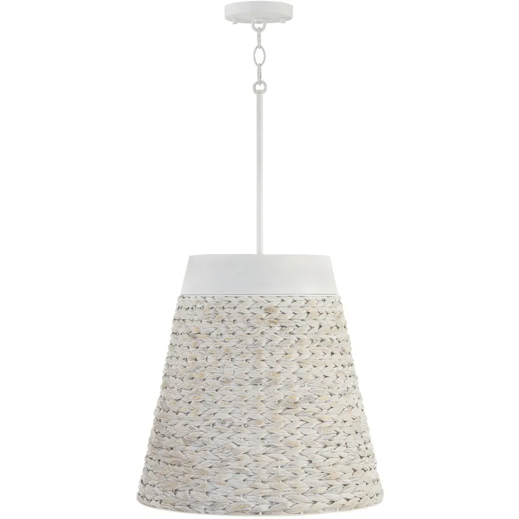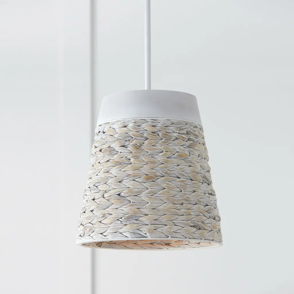 The soft style and timeless texture create the Tallulah Small Pendant. The classic cone silhouette is given a fresh transformation with the hand-braided water hyacinth and band of mango wood. The light tones of the Chalk Wash finish add dimension and sophistication to any space.