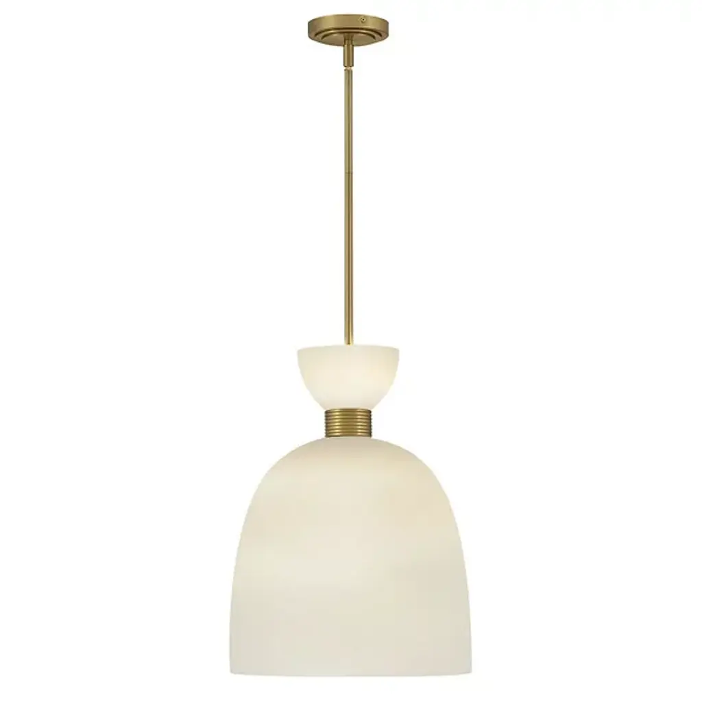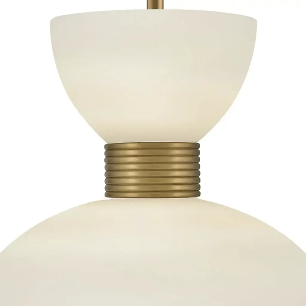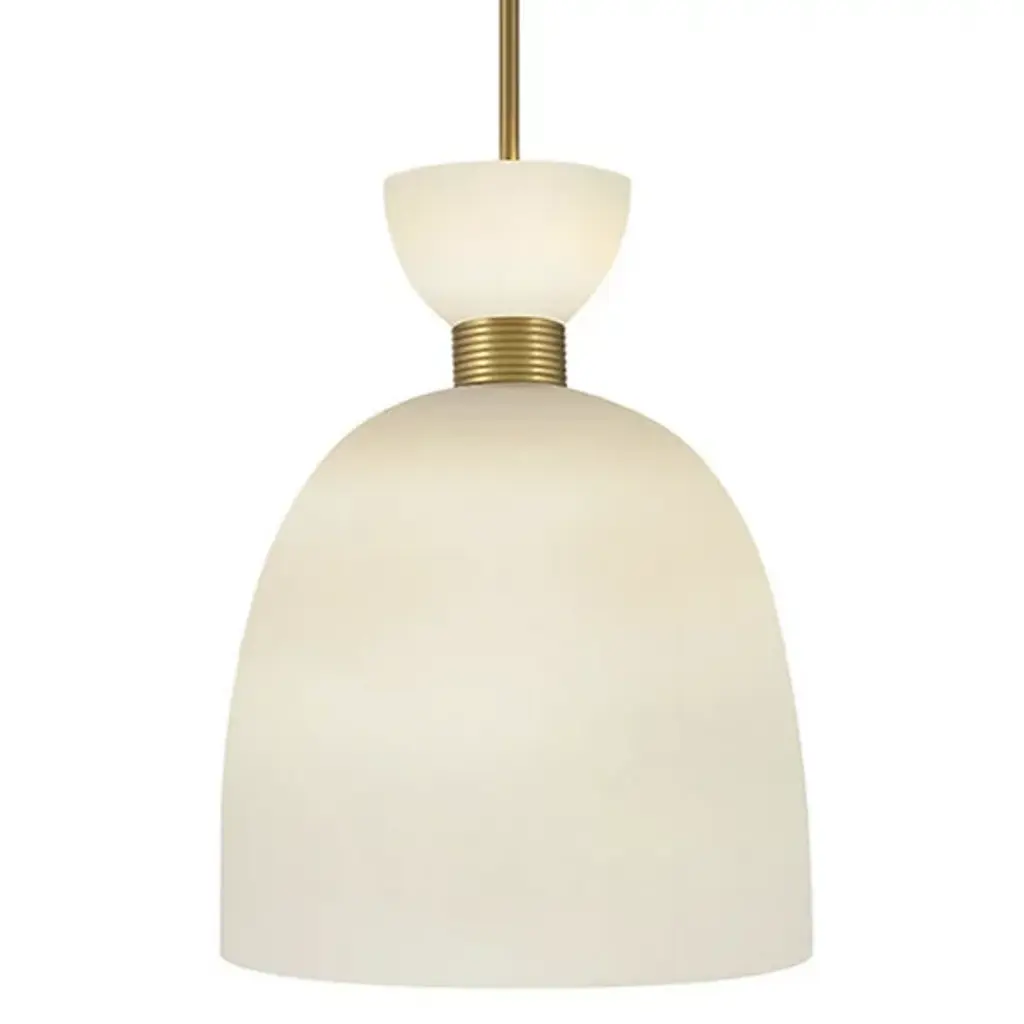 The Tallulah Pendant from Hinkley features a dome shape with delicate ribbed metal detailing that creates subtle texture. This pendant’s design balances vintage and current sensibilities through its thoughtful proportions and mixed material approach. Its etched opal glass diffuser provides gentle, even illumination that radiates both upward and downward to fill rooms with a comfortable glow. Adaptable to various ceiling heights thanks to included stem options, this suspension can be customized to suit your space. Its steel construction ensures durability, while the dome profile offers a fresh alternative to angular fixtures.