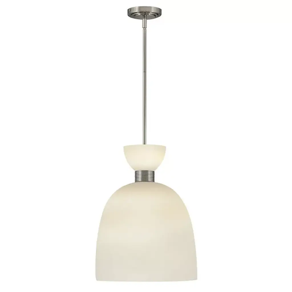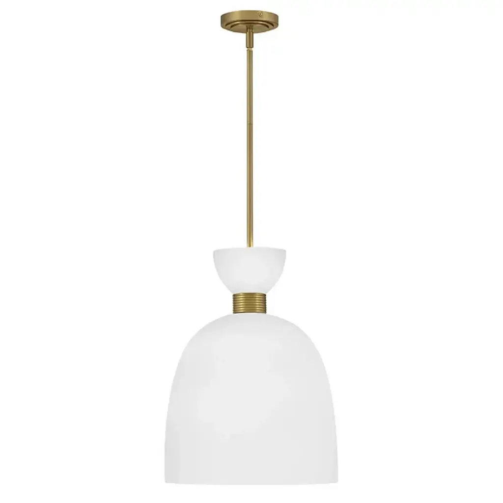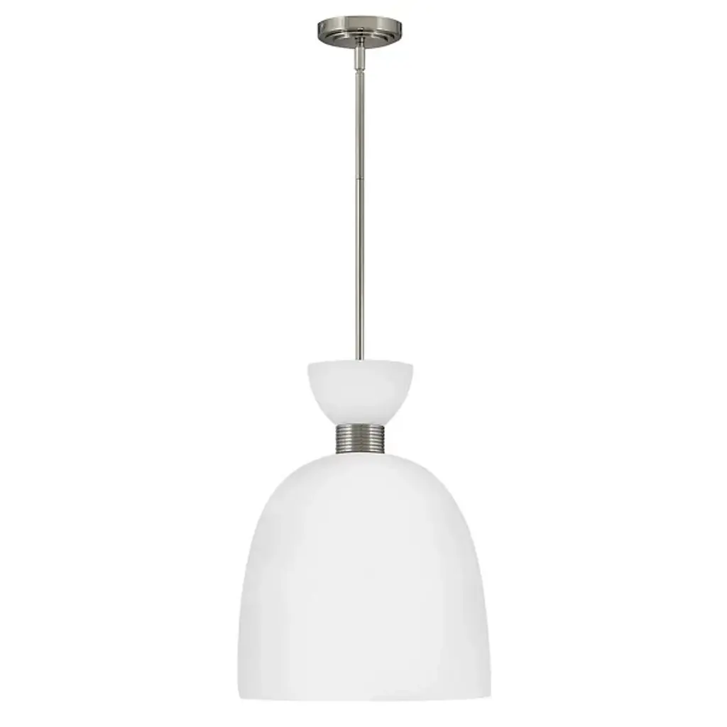 The Tallulah Pendant from Hinkley features a dome shape with delicate ribbed metal detailing that creates subtle texture. This pendant’s design balances vintage and current sensibilities through its thoughtful proportions and mixed material approach. Its etched opal glass diffuser provides gentle, even illumination that radiates both upward and downward to fill rooms with a comfortable glow. Adaptable to various ceiling heights thanks to included stem options, this suspension can be customized to suit your space. Its steel construction ensures durability, while the dome profile offers a fresh alternative to angular fixtures.