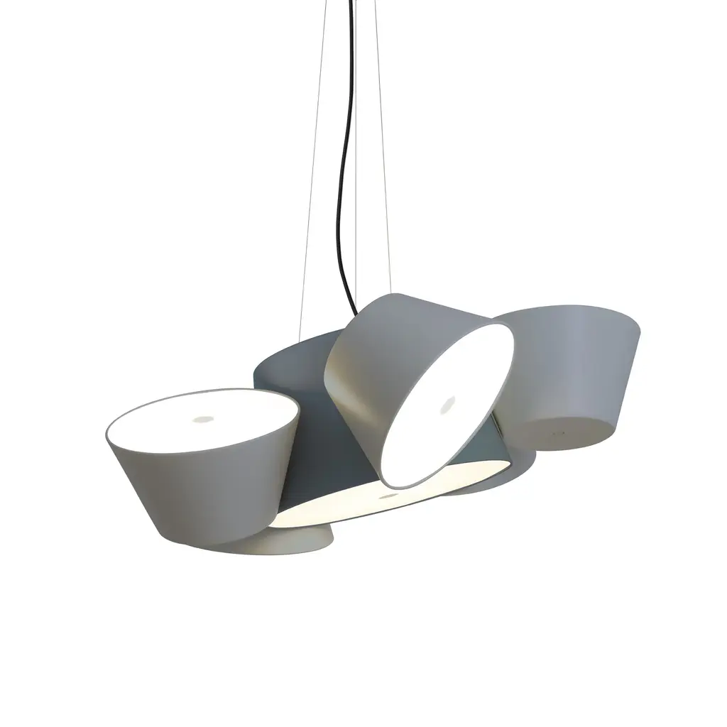 A beaming beauty, the Tam Tam 5 Pendant Light from Marset is a gleaming centerpiece for any contemporary setting. With its spinning lacquered shades and brilliant light, it evokes the image of solar systems in the dark expanse of space. A large central shade acts as a centerpiece, while the outer shades can be rotated for customizable light. A dazzling addition to any space. Highlights