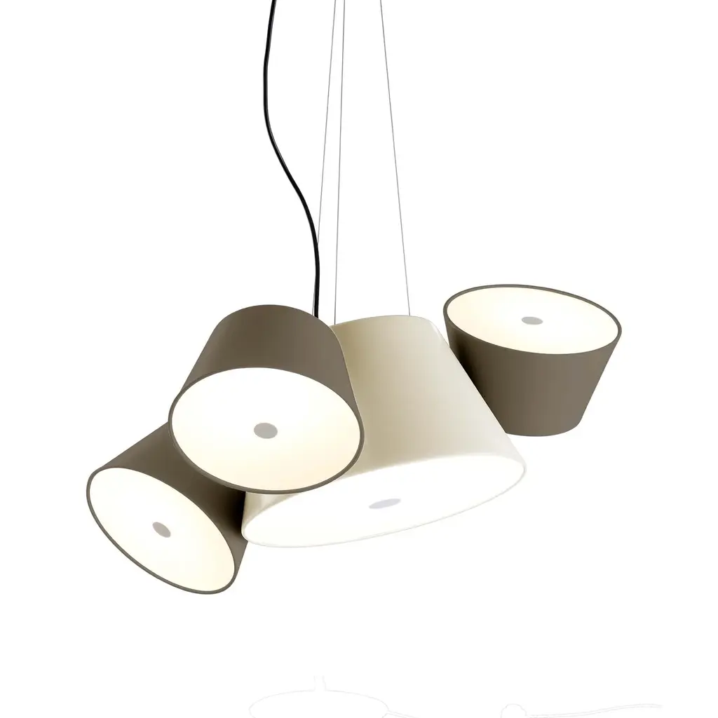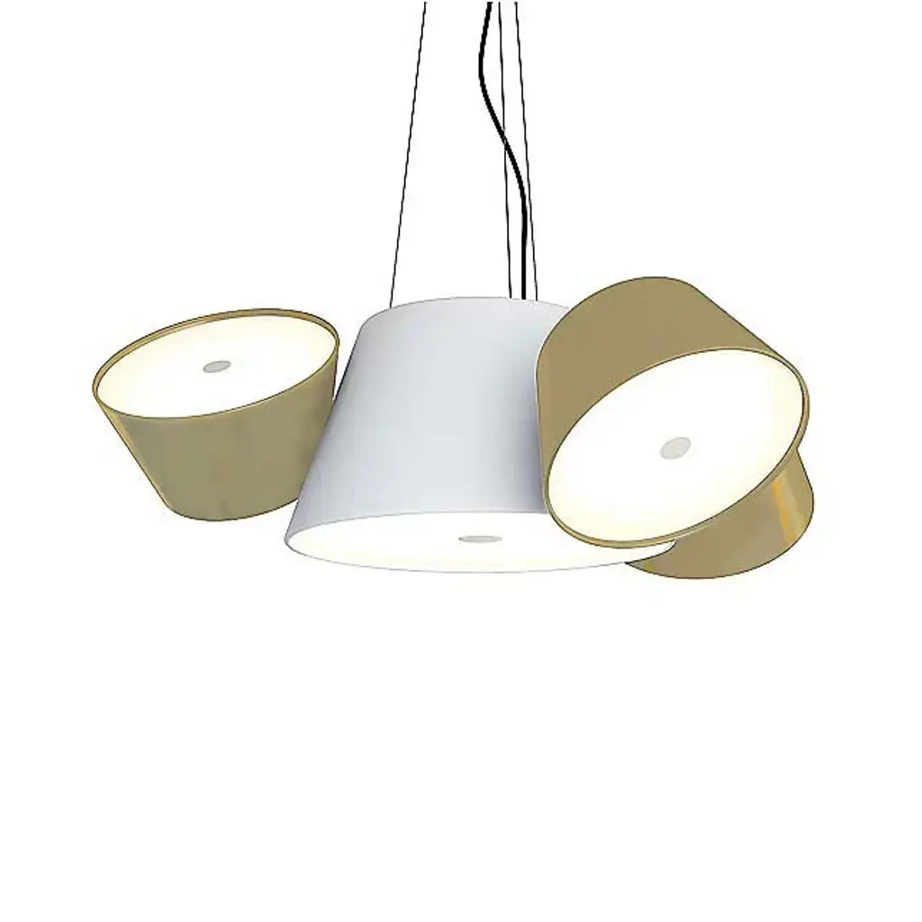 A beaming beauty, the Tam Tam 5 Pendant Light from Marset is a gleaming centerpiece for any contemporary setting. With its spinning lacquered shades and brilliant light, it evokes the image of solar systems in the dark expanse of space. A large central shade acts as a centerpiece, while the outer shades can be rotated for customizable light. A dazzling addition to any space. Highlights