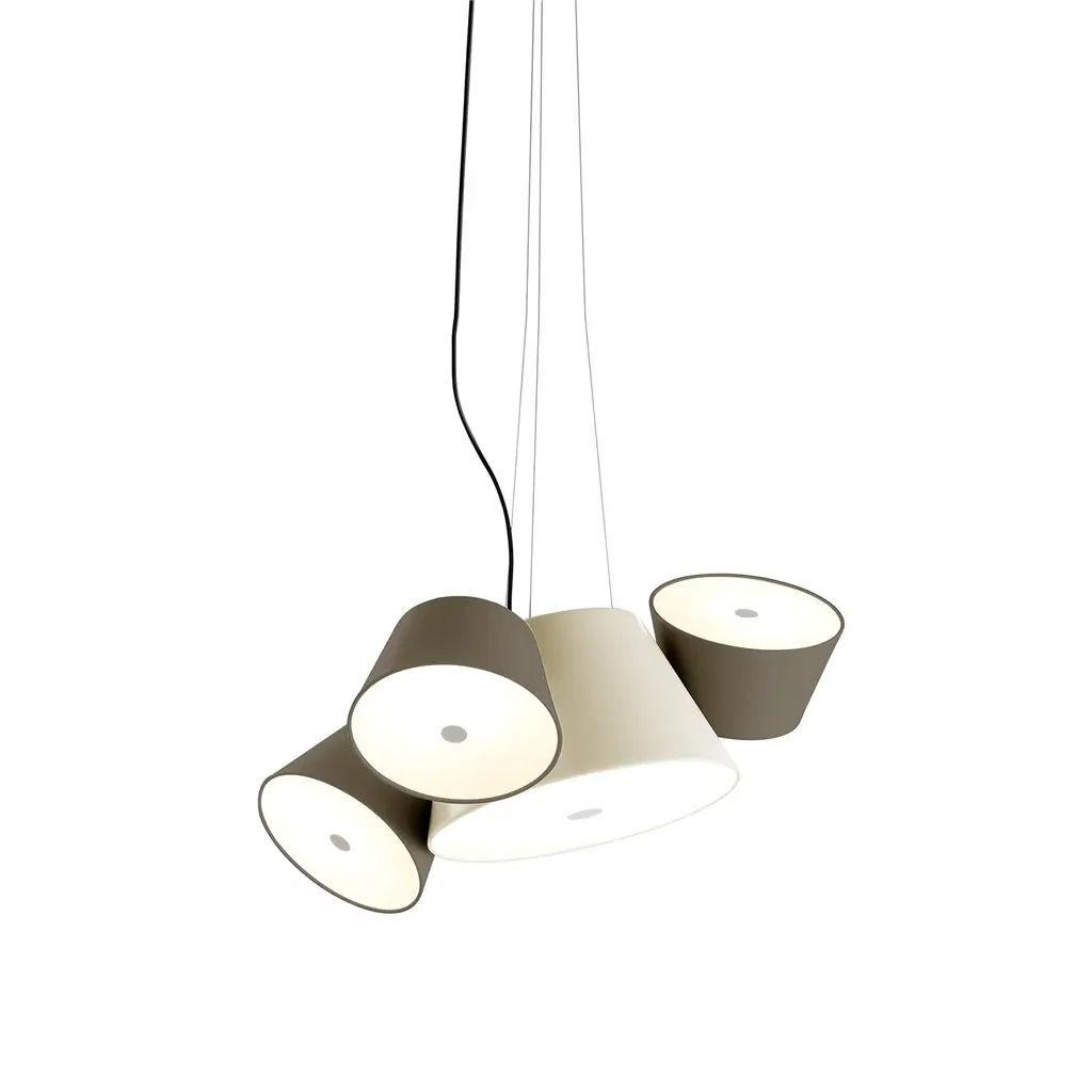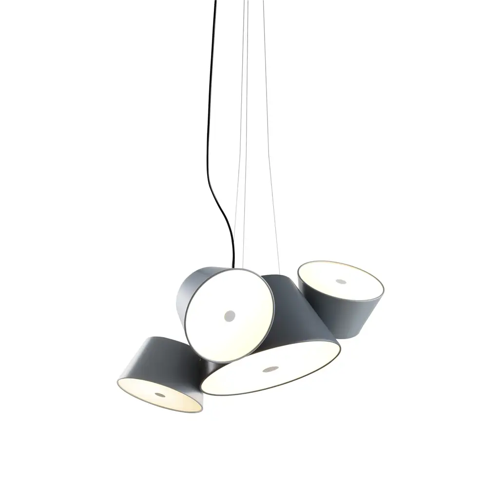 Designer Fabien Dumas scales down his multi-pendant cluster with the fetching Tam Tam Mini, bringing together a center lamp and 3 satellites all in one, and allowing each to send light in any direction. Gently diffused LED illumination is easily aimed by changing the angles of the metal side shades, available in a range of matte colorways to harmonize with Mini’s intended environs.