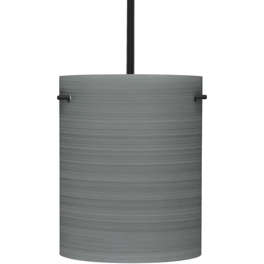 Tamburo is a classic open-ended cylinder of handcrafted glass, a shape that will stand the test of time. Our Titan glass is a soft off-white cased glass that is handcrafted with spiraling strokes of silver, emphasizing the subtle brush pattern. The silvery rippled design is subdued and harmonious. Unlit, it appears as simply a textured surface like spun silk, but when lit the texture comes alive. The smooth satin finish on the clear outer layer is a result of an extensive etching process, with the texture of the subtle brushing. This blown glass is handcrafted by a skilled artisan, utilizing century-old techniques passed down from generation to generation. The cable pendant fixture is equipped with three (3) 10' silver aircraft cables and 10' AWM cordset, and a low profile flat monopoint canopy. These stylish and functional luminaries are offered in a beautiful Black finish.