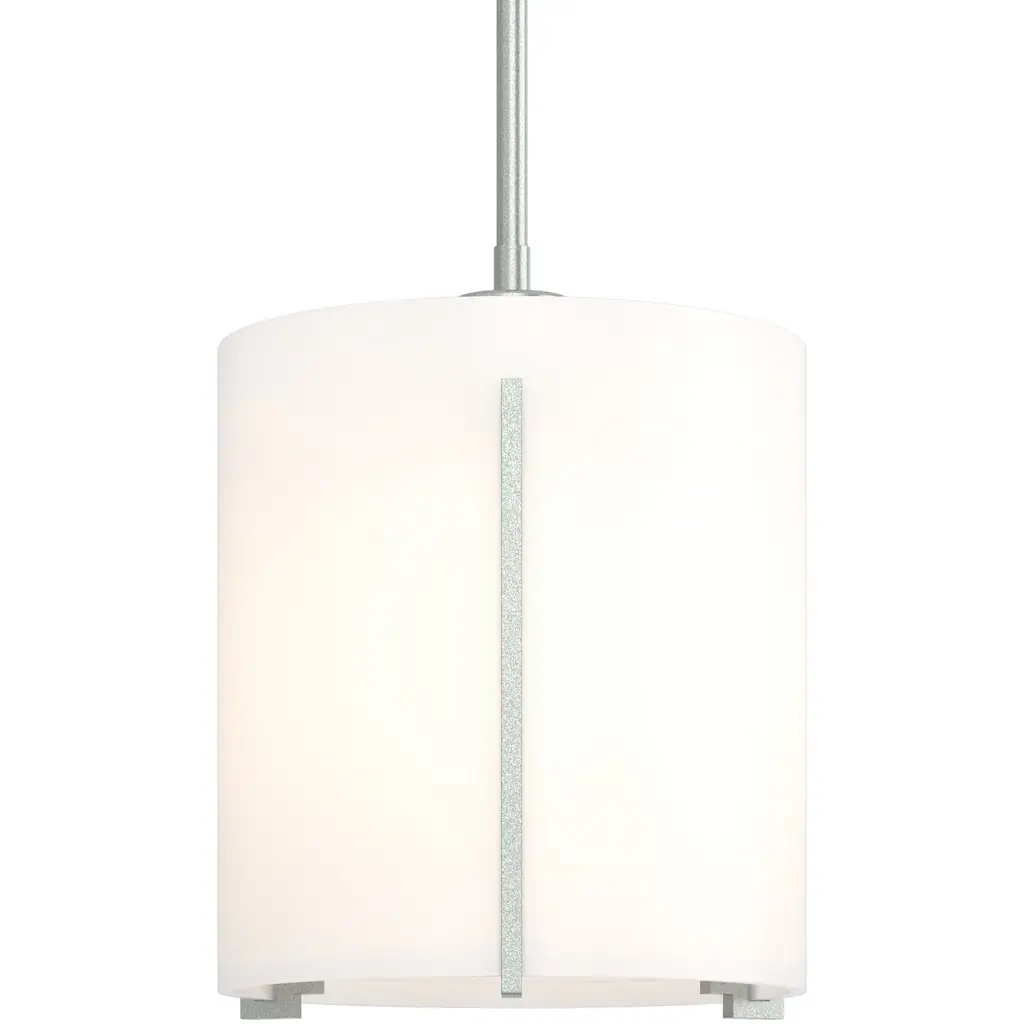 Tamburo is a classic open-ended cylinder of handcrafted glass, a shape that will stand the test of time. Our Chalk glass is a soft white opal cased glass that is handcrafted with spiraling strokes of off-white color, emphasizing the subtle brush pattern. The silvery rippled design is subdued and harmonious. Unlit, it appears as simply a textured surface like spun silk, but when lit the texture comes alive. The smooth satin finish on the clear outer layer is a result of an extensive etching process, with the texture of the subtle brushing. This blown glass is handcrafted by a skilled artisan, utilizing century-old techniques passed down from generation to generation. The cord pendant fixture is equipped with a 10' SVT cordset and a low profile flat monopoint canopy. These stylish and functional luminaries are offered in a beautiful Satin Nickel finish.