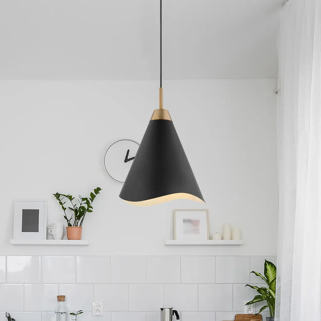 Tango 1-Light Large Pendant Matte Black with Burnished Brass