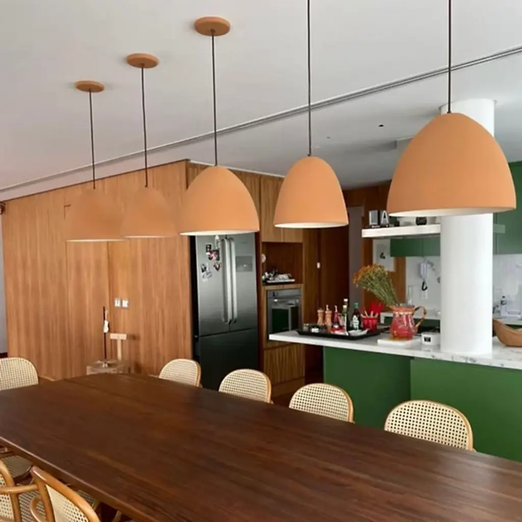 The Tantrus Pendant from Geo Contemporary captivates with its bell-like shape. The ribbed surface creates an engaging play of light and shadow, enhancing its visual appeal. This fixture excels when placed over dining areas, kitchen counters, or entryways. Its dome design focuses illumination downward, perfect for task-oriented spaces. The pendant embodies Brazilian artistry, combining traditional craft with contemporary aesthetics. Its understated elegance allows it to harmonize with different interior styles without overpowering the room.