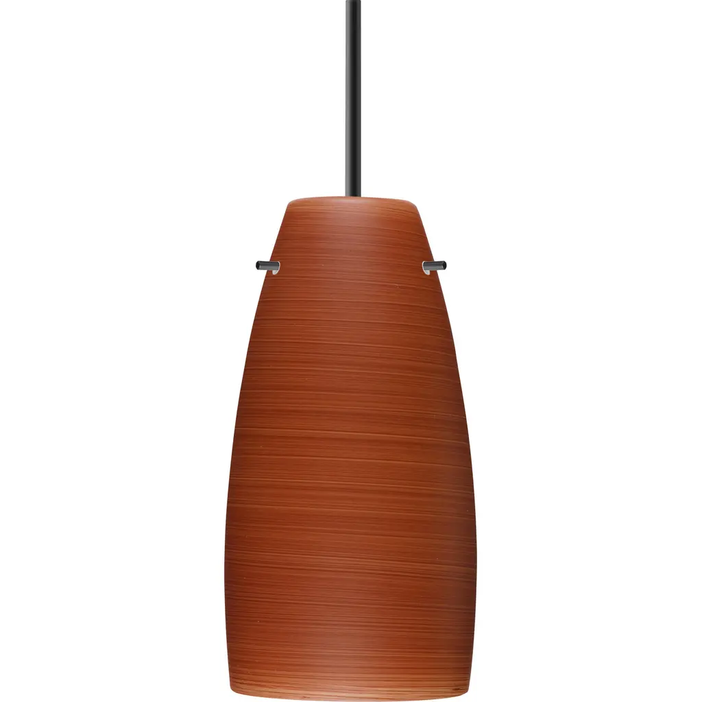 The Tao 10 pendant features a softly radiused glass, that will gracefully blend into almost any decorating theme. Our Oak glass is a soft off-white cased glass that is handcrafted with spiraling strokes of light brown, emphasizing the subtle brush pattern. The wood-toned rippled design is subdued and harmonious. Unlit, it appears as simply a textured surface like wood grain, but when lit the texture comes alive. The smooth satin finish on the clear outer layer is a result of an extensive etching process, with the texture of the subtle brushing. This blown glass is handcrafted by a skilled artisan, utilizing century-old techniques passed down from generation to generation. The cord pendant fixture is equipped with a 10' SVT cordset and a low profile flat monopoint canopy. These stylish and functional luminaries are offered in a beautiful Black finish.