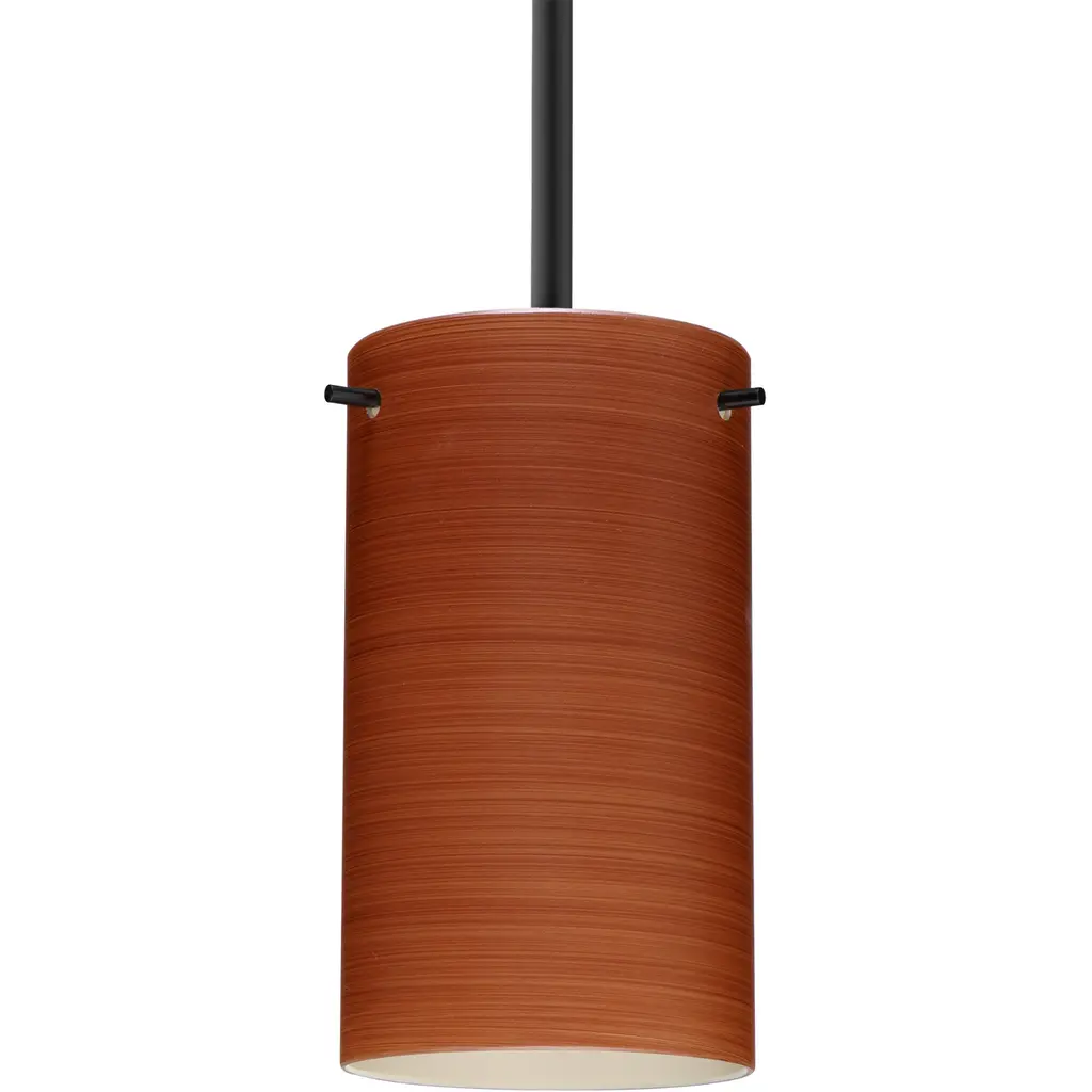 The Tao 10 pendant features a softly radiused glass, that will gracefully blend into almost any decorating theme. Our Oak glass is a soft off-white cased glass that is handcrafted with spiraling strokes of light brown, emphasizing the subtle brush pattern. The wood-toned rippled design is subdued and harmonious. Unlit, it appears as simply a textured surface like wood grain, but when lit the texture comes alive. The smooth satin finish on the clear outer layer is a result of an extensive etching process, with the texture of the subtle brushing. This blown glass is handcrafted by a skilled artisan, utilizing century-old techniques passed down from generation to generation. The stem pendant fixture is equipped with an adjustable telescoping section, 4 connectable stem sections (3", 6", 12", and 18") and low Profile flat monopoint canopy. These stylish and functional luminaries are offered in a beautiful Black finish.