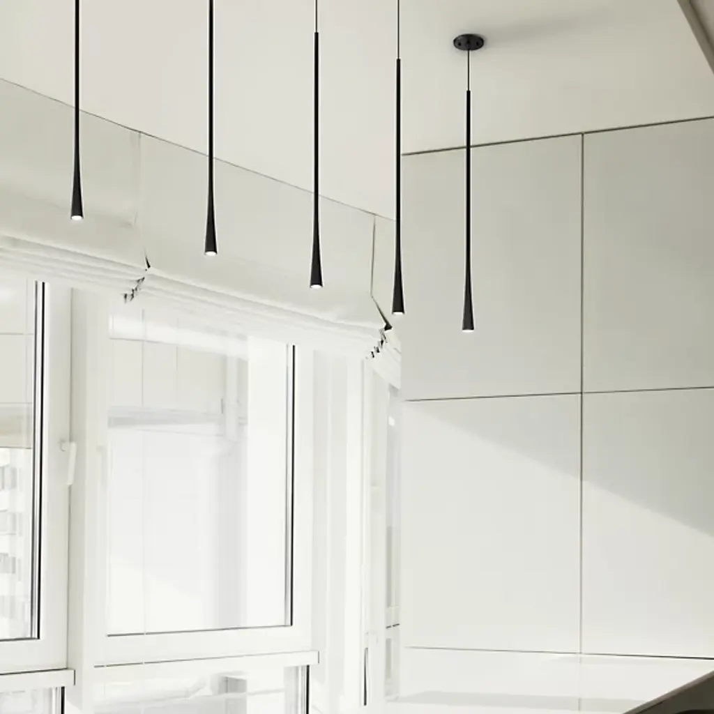The Taper LED Mini Pendant by Kuzco Lighting is a sleek and slender fixture that lends an ample layer of light in a minimal package. Constructed from aluminum, the elongated stem is only slightly thicker than its thin suspension cable, flowing seamlessly down to a conical shade end. Its integrated energy-efficient LED technology channels a warm and focused downlight ideal for application above kitchen islands and dining areas. This pendant’s understated simplicity allows it to seamlessly complement a variety of decorative themes, whether alone or in a grouping.