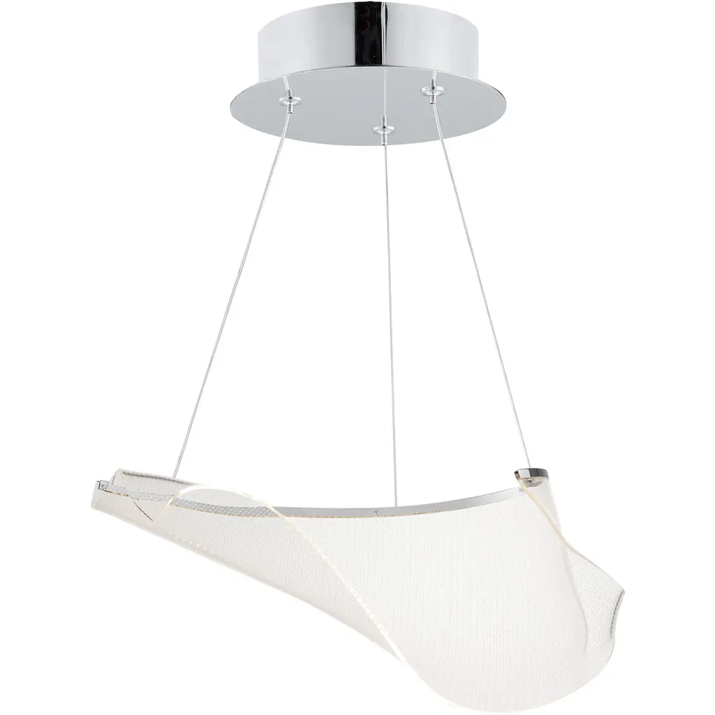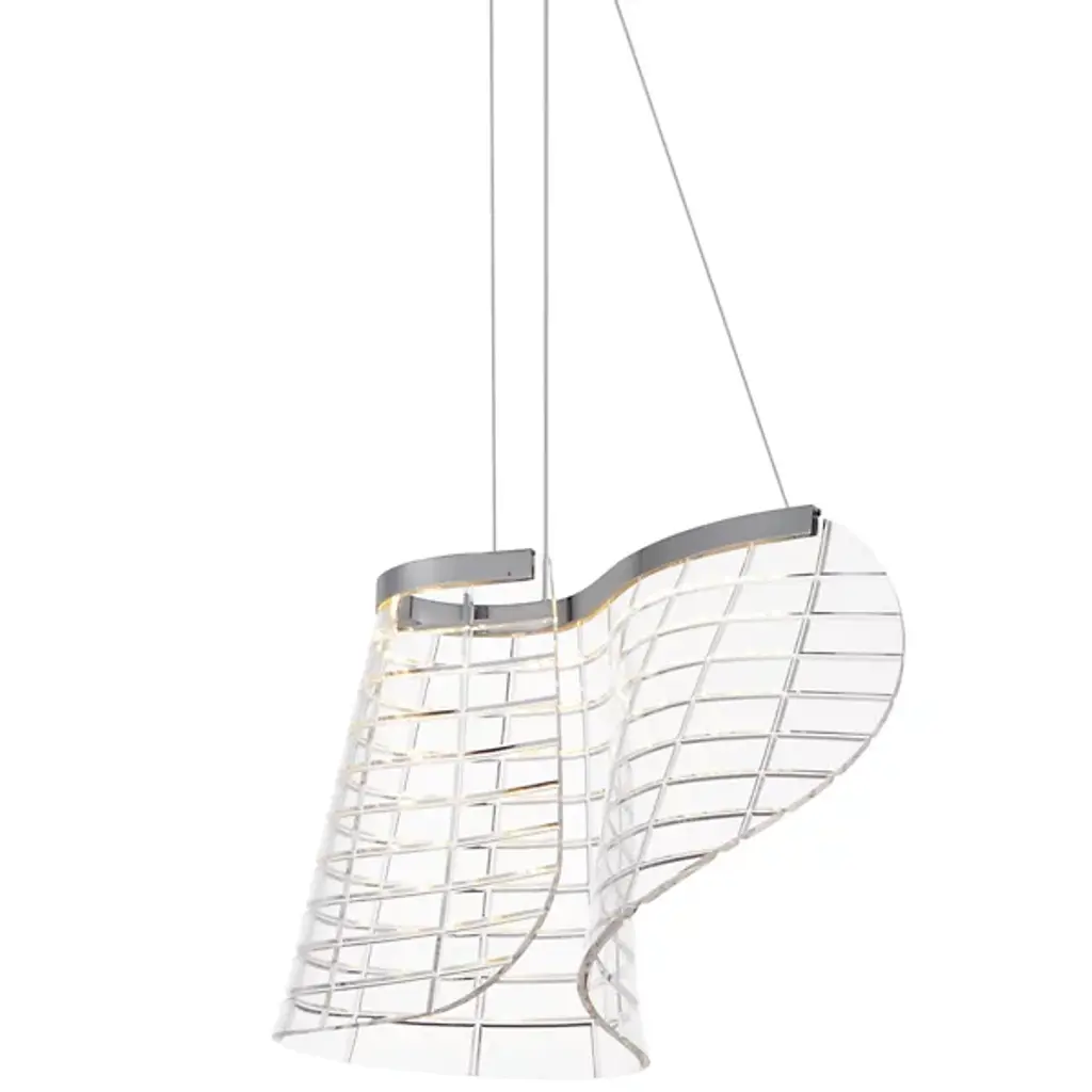 Inspired by patterned fabrics of the Scottish Highlands, the Tartan collection features a waving grid-like design etched deep into the transparent acrylic body. Hand-formed into a curling structure, the material gives the impression of billowing in the breeze. Color temperature selection at the canopy allows you to choose from Warm, Neutral, and Cool White colored LED lighting.