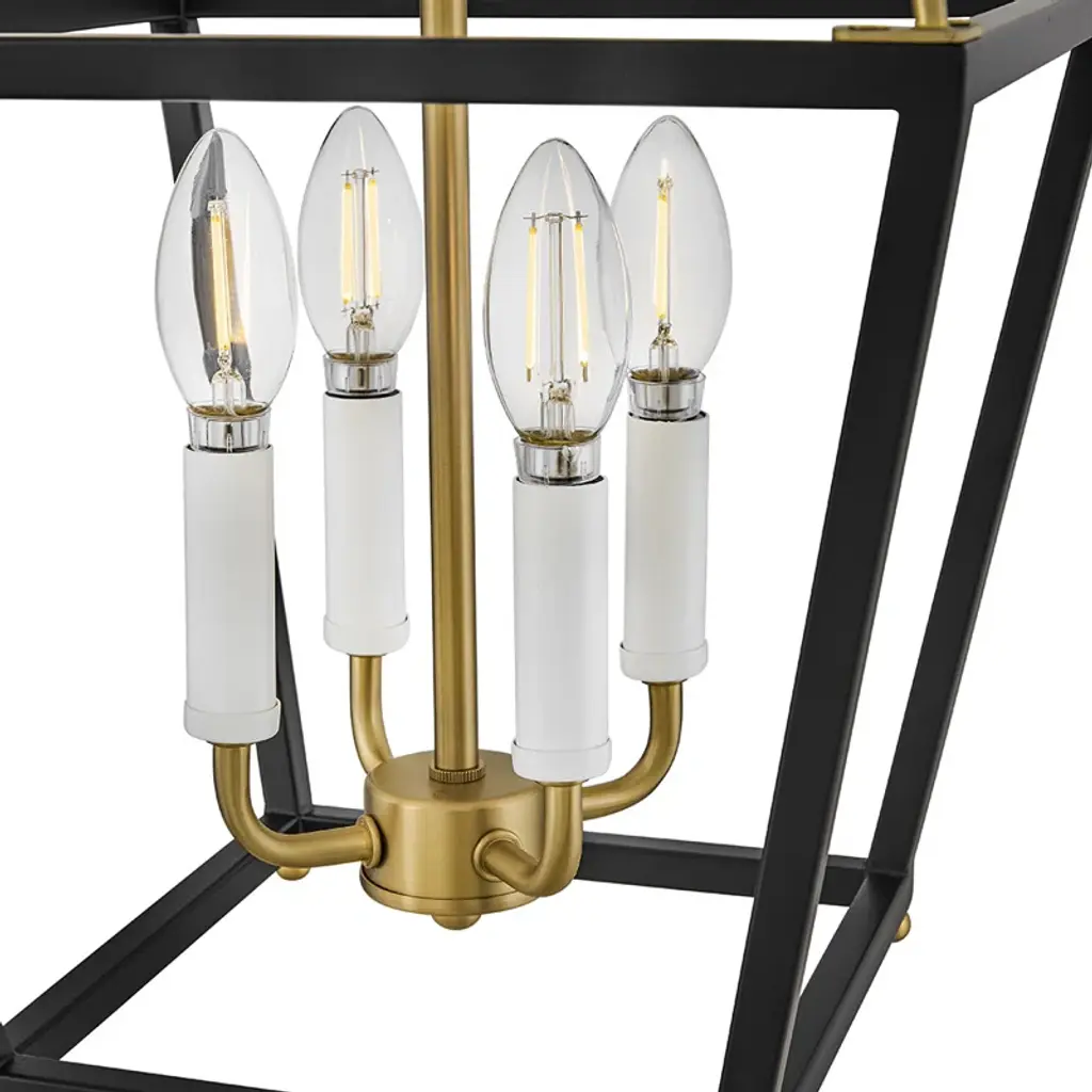 With accent curves in all the right places, Tates classic, lantern-style profile makes a glorious statement in any dining room or living space. Bold Black and Lacquered Brass finishes easily complement any dcor.