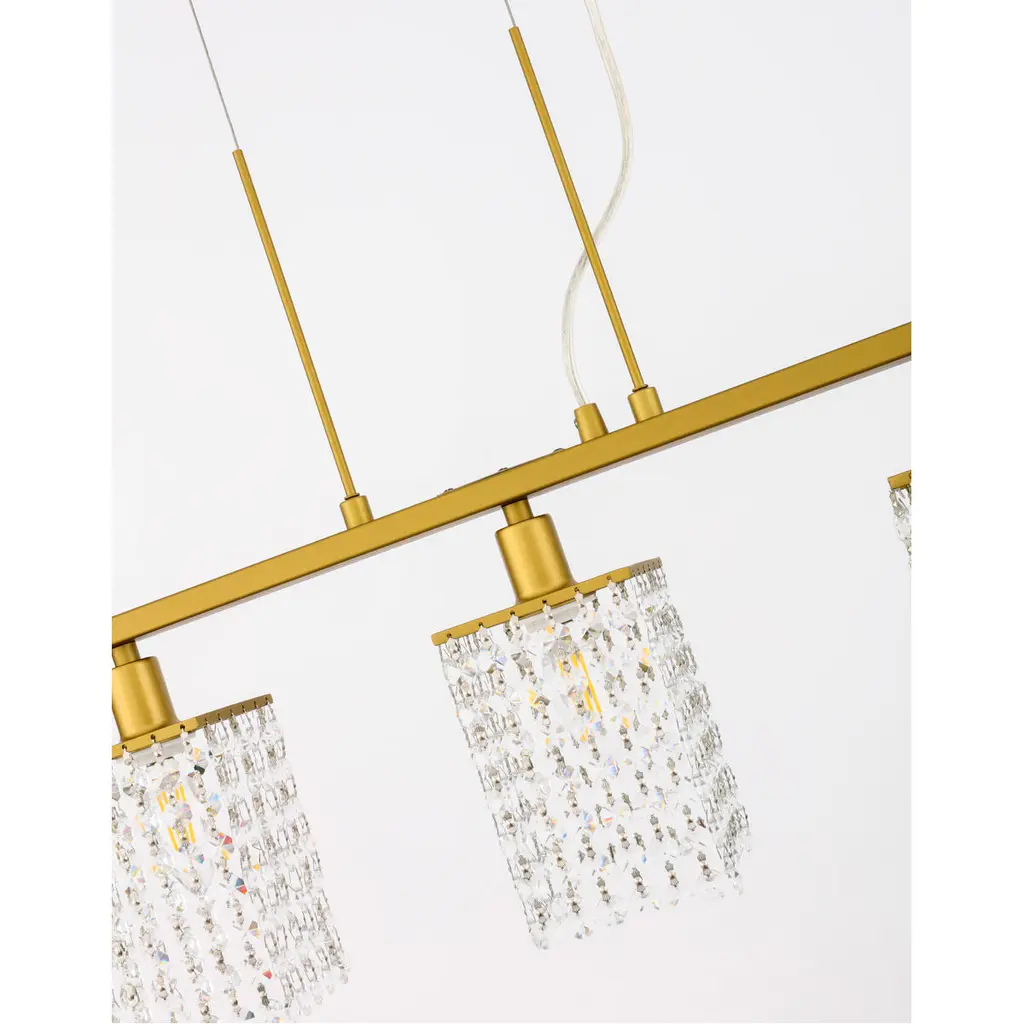 The Taylor collection pendant lamp in a brass finish is evocative of a glamourous era of sparkling jewels, shimmering champagne, and brilliant laughter and conversation that surely danced through the halls. The sparkling crystals are draped over the shimmering lights, whose brilliant illuminations dance its way throughout your rooms. Whether you allow for this 3-light pendant to charismatically greet your beloved guests in the foyer or living room--you can't go wrong.