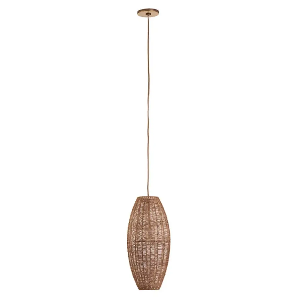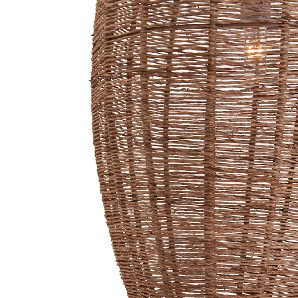 The Teague Tall Pendant from Wildwood extends downward in an elongated oval shape that maximizes the vertical space above dining tables and kitchen islands. This pendant's stretched proportions create more surface area for the woven sisal construction, allowing light to escape through a larger expanse of natural fiber gaps. The tall form works particularly well in rooms with higher ceilings where a standard pendant might appear too small or insignificant. Its narrow width means it won't obstruct sightlines across tables while still providing ample illumination for meals and conversation.