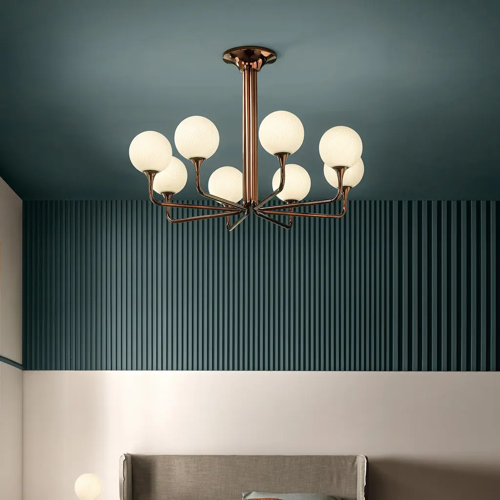 Experience the perfect balance of rigor and elegance with Tee Round Multi Light Pendant Light from Masiero. Its curved form and organically shaped stems, inspired by calla lilies, create a graceful and intriguing presence. With contrasting cool metal and warm opal glass, this ceiling light is a luxurious addition to any modern space. Highlights