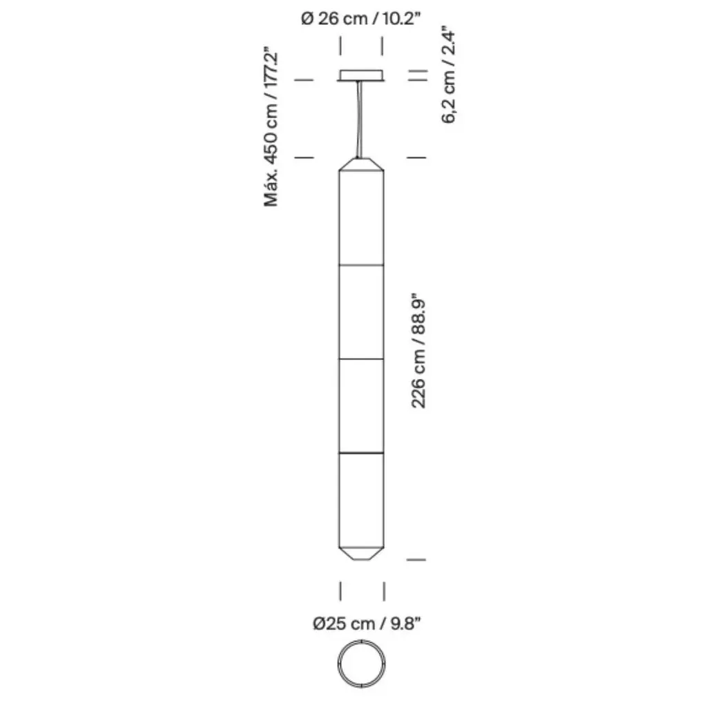 'Tekio Vertical P4' pendant lamp in Japanese Washi paper for Santa & ColeFounded in 1985 in Barcelona, Santa & Cole produces iconic pieces by such luminaries as llmari Tapiovaara, Miguel Milá and other European icons with a commitment to faithfully re-edition their legendary designs with uncompromising attention to detail, materials and craftsmanship.The 'Tekio Vertical P4' is a highly technical pendant lamp carefully wrapped in handmade Japanese Washi paper, made famous from Noguchi's Akari lamps. Featuring an integrated LED with adjustable brightness and color temperature, the user is able to adjust the lamp's warm & gentle output to their desired preferences. The 'Tekio Vertical P4' seamlessly merges ancient artisan techniques with current LED technology, combining traditional and avant-garde in a modern lighting structure. The 'Tekio Vertical P4' continues to be meticulously crafted to Santa & Cole's exacting standards using the highest quality materials available.Price per item. Available in unlimited quantities and in choice of one, two, three or four sections as well as in horizontal or circular variations - please see our other listings. This listing is for the 'Tekio Vertical P4' with metal structure, handmade Washi paper shade and methacrylate inner diffuser.In stock lead time 1-2 weeks. Out of stock can add an additional 4-8 weeks or more. Please note that lead times and inventory availability are subject to change without notice. For time sensitive orders, please contact us for current lead times prior to purchasing. Kindly note that items must ship from Santa & Cole’s Barcelona warehouse, so 1st Dibs arranged shipping and local pickup are not available. Shipping cost quoted is per item and cannot be combined. Free standard shipping on all lighting orders less than $17,000.Illuminated via integrated LED. Dimmable according to switch (switch not included) providing 87 watts, up to 3051 lumens, color temperature adjustable between 2200 - 2700K and CRI 85. Suspended from white metal canopy 10.2" in diameter (canopy included) by metal wire and black power cord with maximum drop of 14.7'. This lamp is UL listed.Made to order. All sales are final.