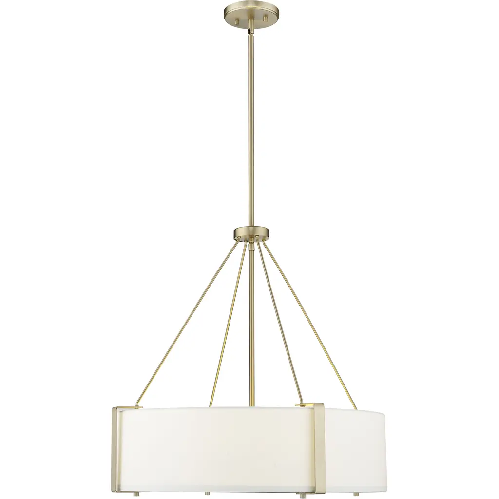 The Telfar Family of pendant lighting creates an elegant statement in any entryway, hall, or bedroom. The Art-Deco-inspired metal framework is finished in either modern gold or matte black and provides a bold and stylish structure for the white fabric shade and opaque white glass diffuser. These luxurious fixtures are available as 3- and 6-light options and are the perfect touch for any design scheme from vintage chic to transitional modern.