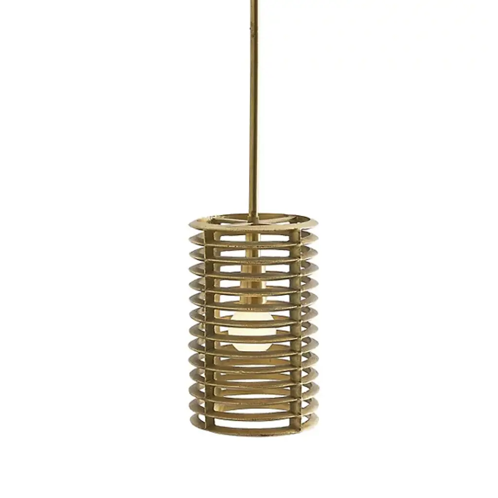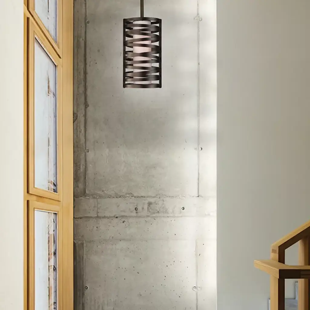 Controlled chaos. Metalsmiths at Hammerton Studio evoke the spirit of the storm with swirling bands of handcrafted steel in the Tempest Mini Pendant. A cylindrical form contains the masterwork by artisans; it stands beautifully on its own or in sequence. Breezy contours of thick-cut steel move freely; they cross over with each other in a surging showcase. In the eye of the storm, a single bulb hangs with fine tubing in a dramatic arrangement. Its light complements the energy of the shade with a soothing, mellow glow.