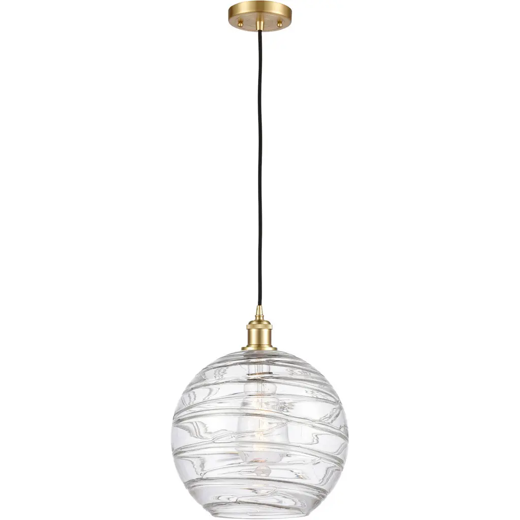 Terra Pendant-Gilded Brass-Optic Blown Glass - Smoke-Brass Cloth Braided Cord-E26