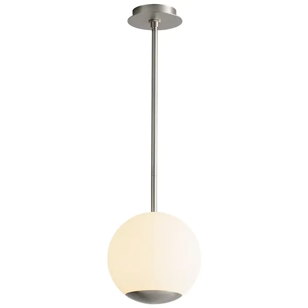 An eye of seductive illumination. The Terra LED Pendant from Oxygen Lighting gazes over your kitchen islands and dining tables with charming optics. Let the piece stand on its own as a sophisticated dash or order it into a handsome linear series overhead. Alluring in its solid steel construction, this piece suspends with an adjustable down rod and low-profile canopy. A matte white glass globe shade raises the spirits in a room as a warm ambient glow from its LEDs filters out. The circular steel accent at the base creates an evocative silhouette sure to leave an impression.