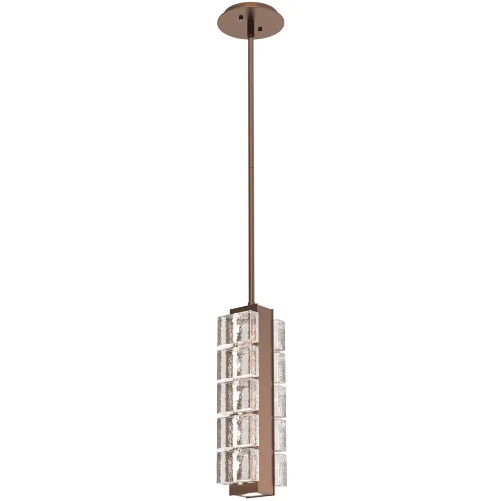 LED pendant featuring parallel forms of Rake cast glass. Inspired by Zen patterns formed with tiny pebbles, Rake combines monumental cast glass with deep hand carved patterns, perfectly captured by an array of hidden waterproof LEDs, giving the glass