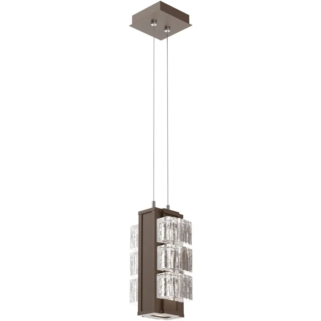 LED pendant featuring parallel forms of Rake cast glass. Inspired by Zen patterns formed with tiny pebbles, Rake combines monumental cast glass with deep hand carved patterns, perfectly captured by an array of hidden waterproof LEDs, giving the glass