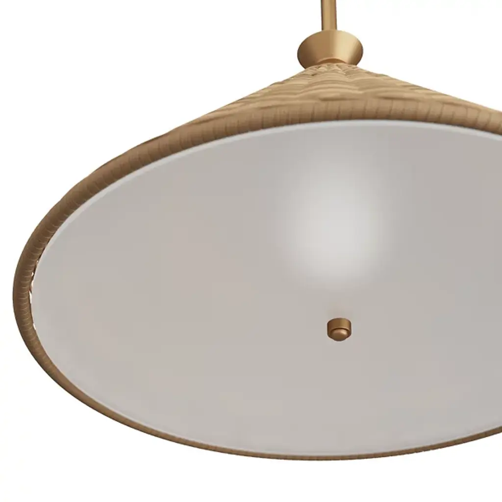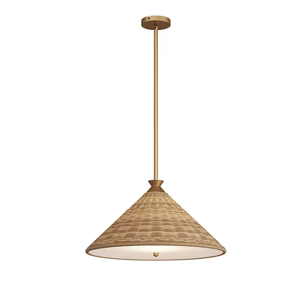 Embrace Caribbean sophistication with the Terrace Pendant from Arteriors, a seamless addition to the Terrace family. Crafted from natural, handwoven rattan, this pendant radiates organic charm. Gold-finished iron accents create a captivating contrast, enhancing its whimsical silhouette. Elevate your space with the Terrace Pendant, where craftsmanship and contrast converge, offering a touch of Caribbean allure. Bring distinctive design and a hint of the tropics to your decor with this unique and stylish lighting fixture.