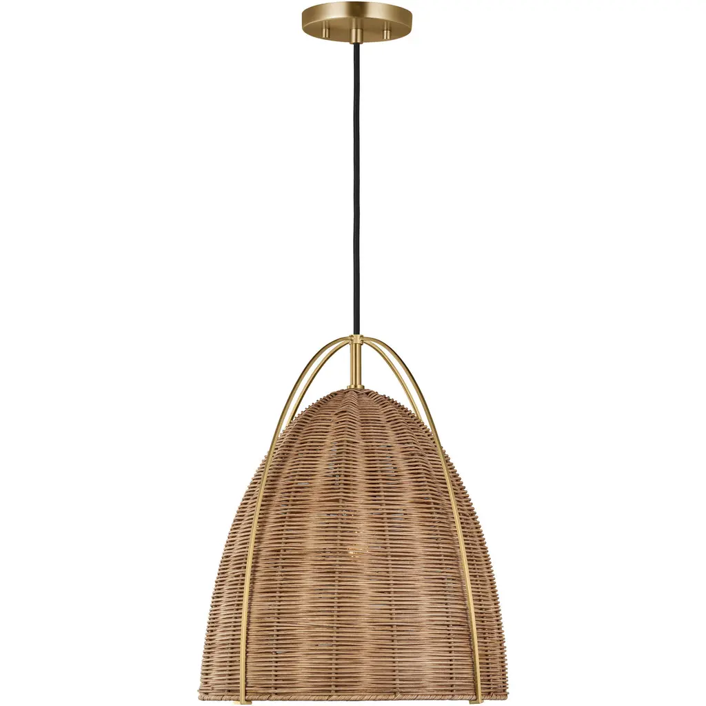 Bound by a shape yet free-flowing with an artful quality. Bring a stylish, organic aesthetic to your rooms with the handcrafted rattan construction of the Terri Pendant from Alder & Ore. Artisans takes strands of natural rattan and interlace them to create a sophisticated dome highlighted by its artful grid pattern. The jazzy contours of the shade soften up the brilliant light produced by the bulb inside, translating to a soothing ambient glow. Even without the shade, the piece exudes sophistication in its slender suspension and crisp metal hardware. It’s a pendant that works as a 1 or 2 of over a dining table or kitchen island.