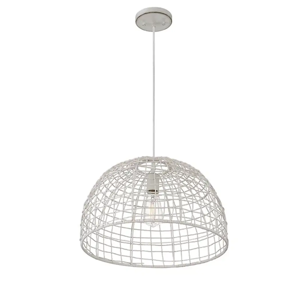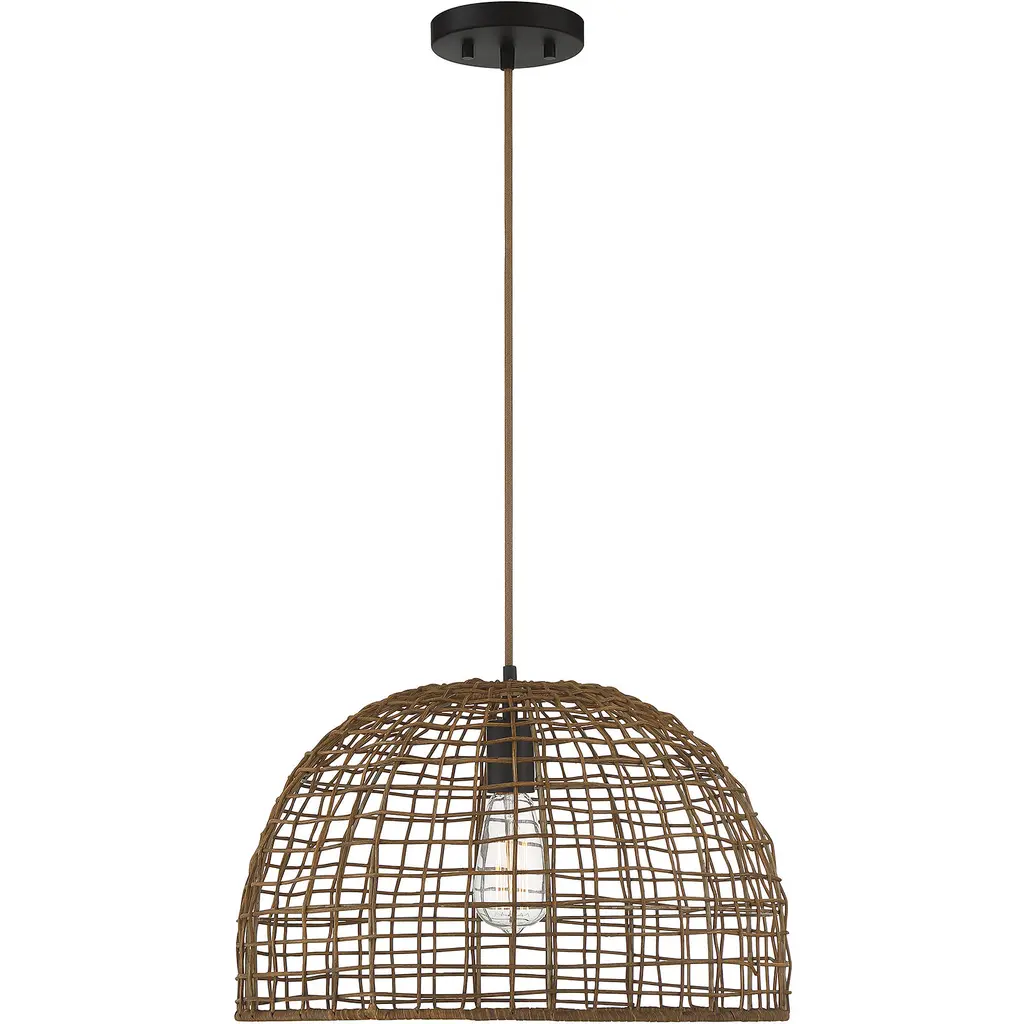Bound by a shape yet free-flowing with an artful quality. Bring a stylish, organic aesthetic to your rooms with the handcrafted rattan construction of the Terri Pendant from Alder & Ore. Artisans takes strands of natural rattan and interlace them to create a sophisticated dome highlighted by its artful grid pattern. The jazzy contours of the shade soften up the brilliant light produced by the bulb inside, translating to a soothing ambient glow. Even without the shade, the piece exudes sophistication in its slender suspension and crisp metal hardware. It’s a pendant that works as a 1 or 2 of over a dining table or kitchen island.