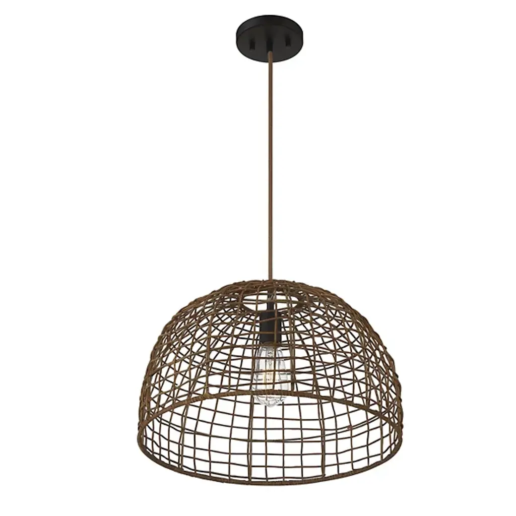 Bound by a shape yet free-flowing with an artful quality. Bring a stylish, organic aesthetic to your rooms with the handcrafted rattan construction of the Terri Pendant from Alder & Ore. Artisans takes strands of natural rattan and interlace them to create a sophisticated dome highlighted by its artful grid pattern. The jazzy contours of the shade soften up the brilliant light produced by the bulb inside, translating to a soothing ambient glow. Even without the shade, the piece exudes sophistication in its slender suspension and crisp metal hardware. It’s a pendant that works as a 1 or 2 of over a dining table or kitchen island.