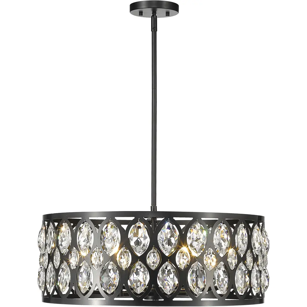 Terzo 9 Light 28 Inch Matte Black With Polished Chrome Pendant Ceiling Light