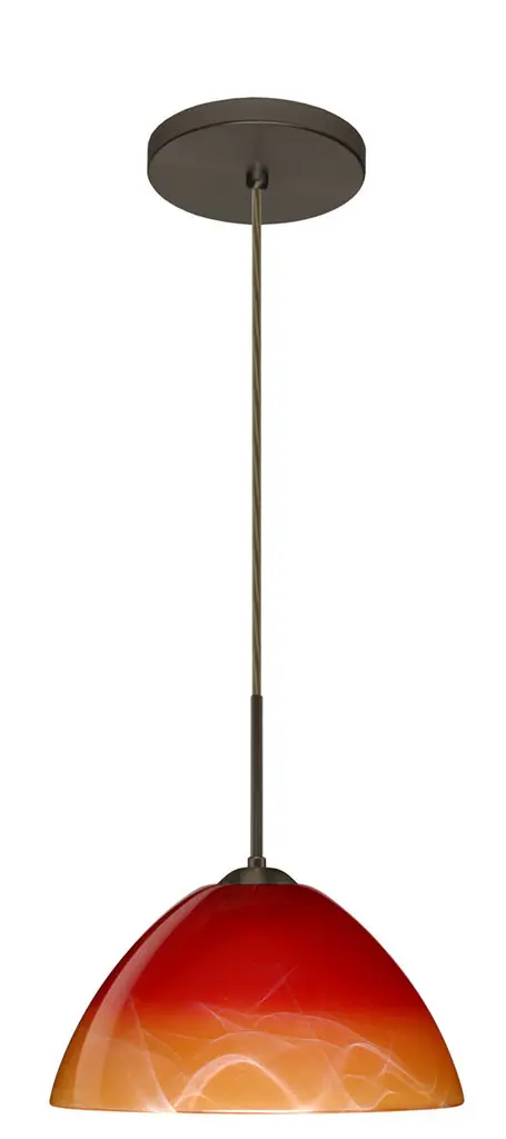Tessa has a classical bell shape that complements aesthetic, while also built for optimal illumination. Our Solare glass is a pressed glass that features swirls of white throughout clear glass, which then is colored with a translucent mix of red-orange to yellow. This décor is classic and can be used in various ways. When lit this gives off a light that is functional and soothing. The smooth satin finish on the clear outer layer is a result of an extensive etching process. This handcrafted glass uses a process where every glass is consistently produced using a press mold, keeping variations to a minimum. The cord pendant fixture is equipped with a 10' SVT cordset and an low profile flat monopoint canopy. These stylish and functional luminaries are offered in a beautiful brushed Bronze finish.