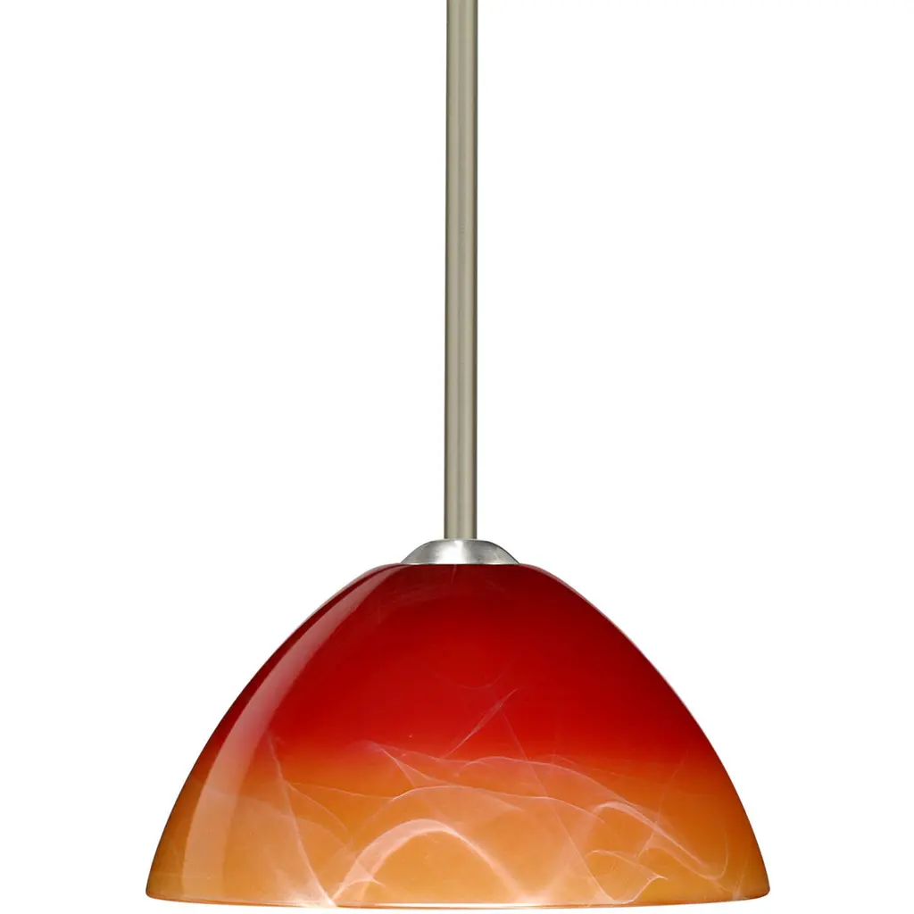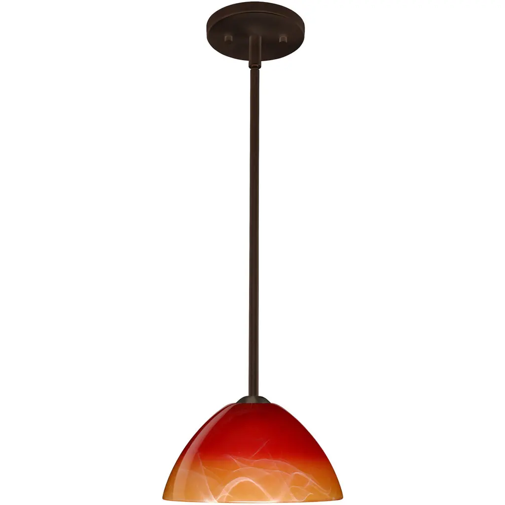 Tessa has a classical bell shape that complements aesthetic, while also built for optimal illumination. Our Solare glass is a pressed glass that features swirls of white throughout clear glass, which then is colored with a translucent mix of red-orange to yellow. This décor is classic and can be used in various ways. When lit this gives off a light that is functional and soothing. The smooth satin finish on the clear outer layer is a result of an extensive etching process. This handcrafted glass uses a process where every glass is consistently produced using a press mold, keeping variations to a minimum. The stem pendant fixture is equipped with an adjustable telescoping section, 4 connectable stem sections (3", 6", 12", and 18") and low Profile flat monopoint canopy. These stylish and functional luminaries are offered in a beautiful brushed Bronze finish.