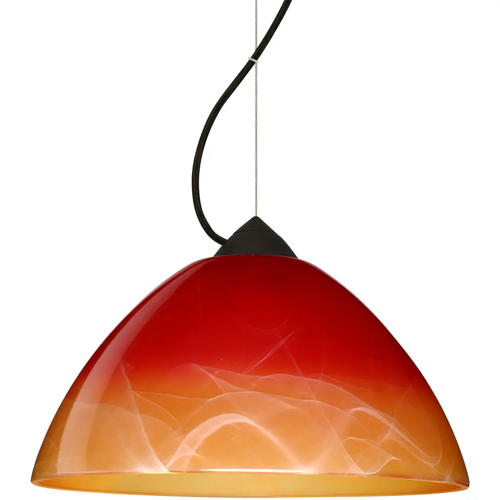 Tessa has a classical bell shape that complements aesthetic, while also built for optimal illumination. Our Solare glass is a pressed glass that features swirls of white throughout clear glass, which then is colored with a translucent mix of red-orange to yellow. This décor is classic and can be used in various ways. When lit this gives off a light that is functional and soothing. The smooth satin finish on the clear outer layer is a result of an extensive etching process. This handcrafted glass uses a process where every glass is consistently produced using a press mold, keeping variations to a minimum. The stem pendant fixture is equipped with an adjustable telescoping section, 4 connectable stem sections (3", 6", 12", and 18") and low Profile flat monopoint canopy. These stylish and functional luminaries are offered in a beautiful Black finish.
