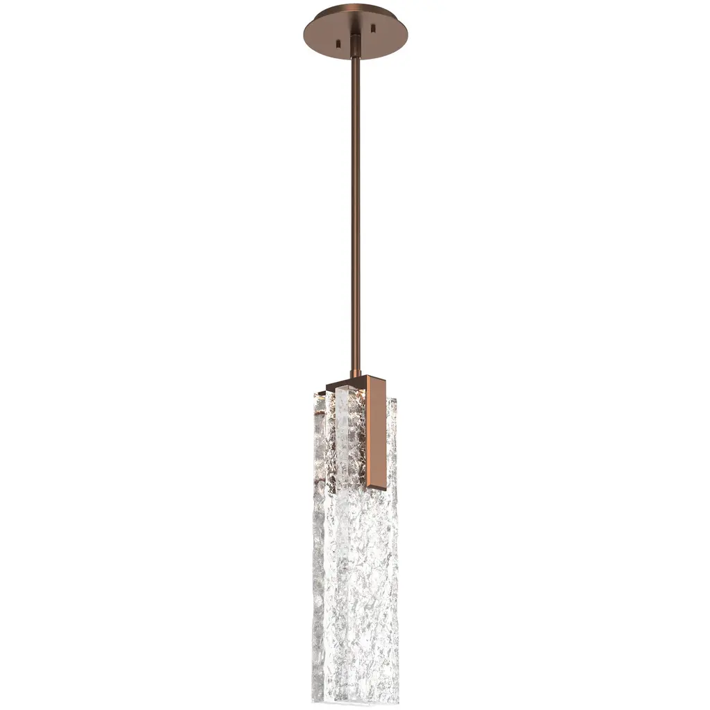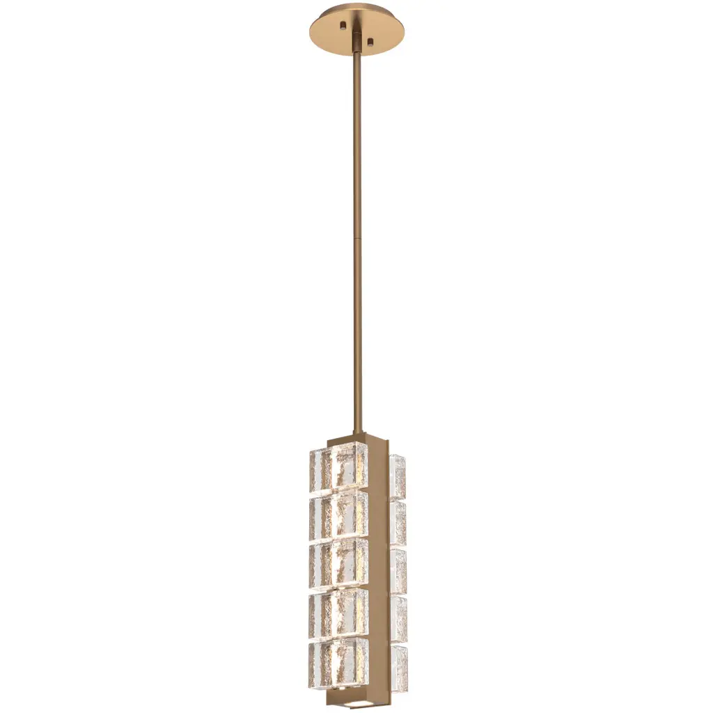 Tessera Pendant-Burnished Bronze-Pav? Cast Glass-Threaded Rod Suspension-AC LED 3000K