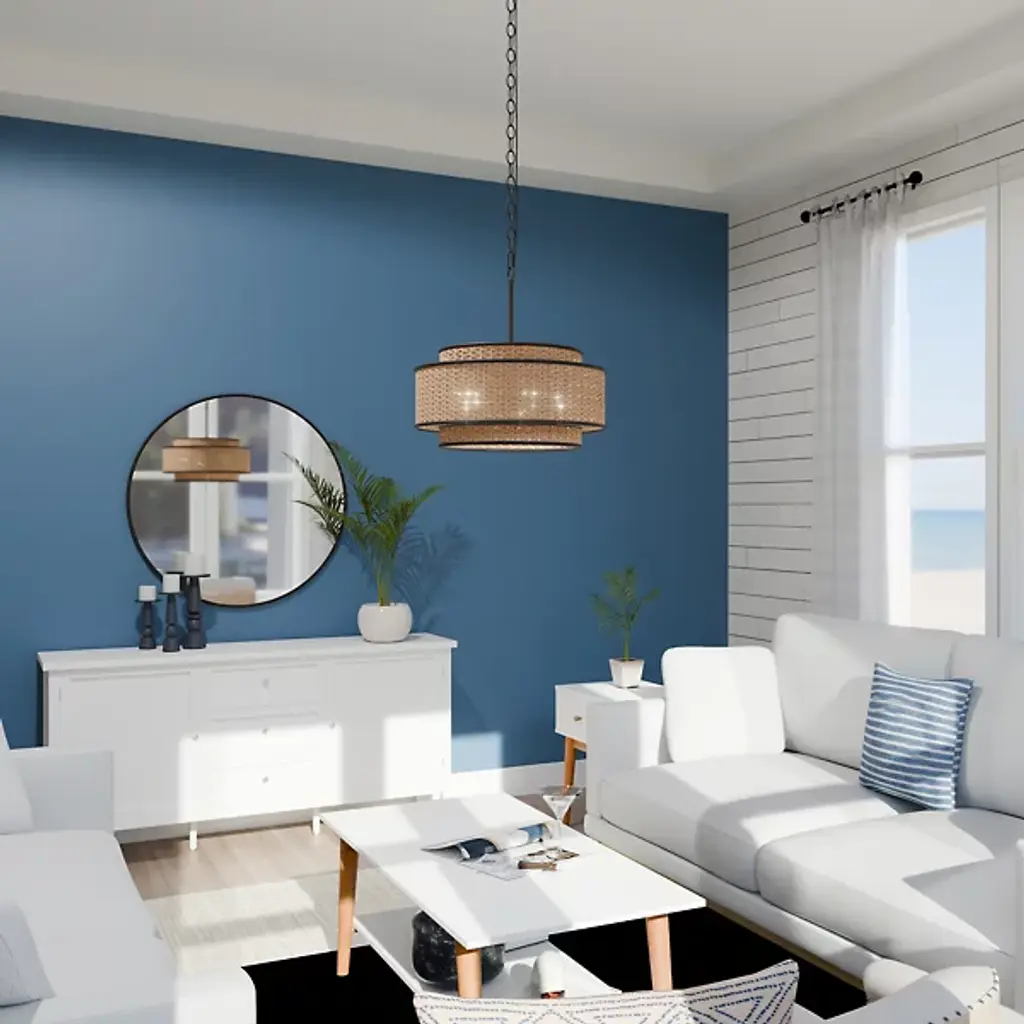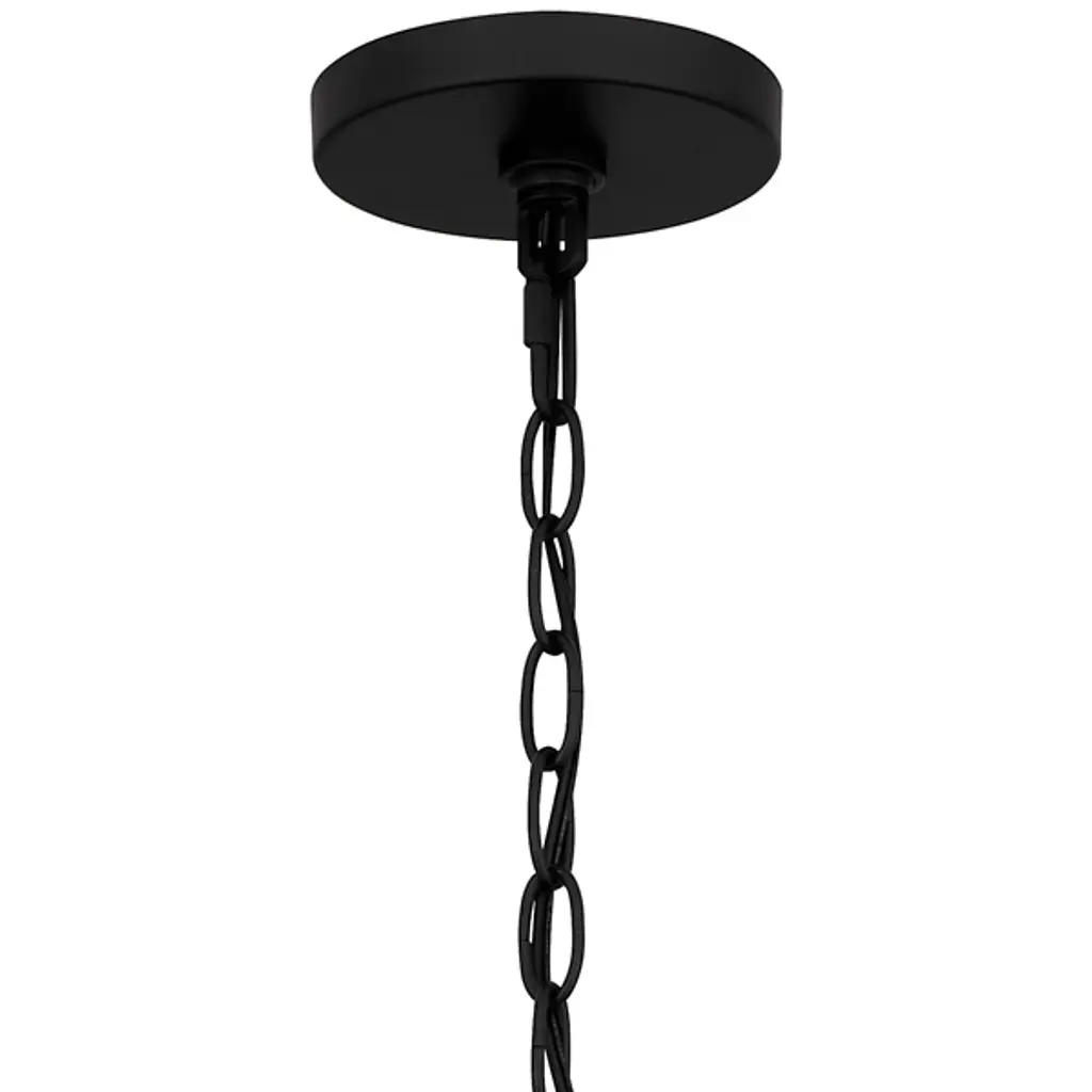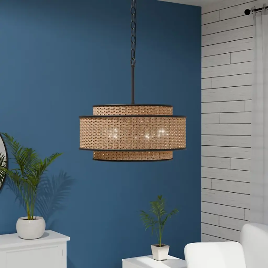 The Teton Pendant from Quoizel brings a touch of global styling and natural charm to any space. A classic drum silhouette with a matte black finish and casual layers, this pendant exudes measured transitional elegance. The natural rope shade sets it apart, adding depth and contrast to the otherwise simple frame and infusing a hint of bohemian flair. The fixture is fashioned from steel with a rope shade woven into a repeating angular pattern, blending transitional and bohemian styles, making it a versatile and visually appealing addition to any interior décor design.
