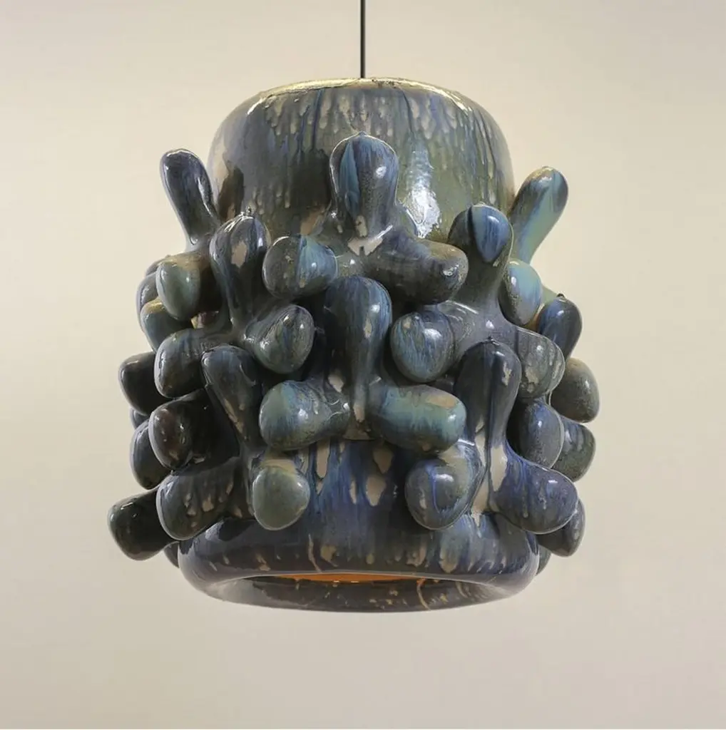 Tetra Ceramic pendant lamp by MakhnoDimensions: D 58 x H 61 cmMaterials: CeramicsAll our lamps can be wired according to each country. If sold to the USA it will be wired for the USA for instance.This lamp started with our star-tile Tetrapod that got Red Dot Award 2017. We put it on a ce- ramic piece of lighting and in the result we got amadness lamp. It’s like a hedgehog wandering beneath the ceiling. Bold in its colors, and even bolder in its idea.Makhno Studio is a workshop of modern Ukrainian design and architecture. We work in Ukrainian contemporary style. According to international experts, this style will change the Scandinavian on the world design stage.Since 2003, we have been creating projects intertwining Ukrainian traditions, world trends and the Japanese philosophy of wabi-sabi, the forces of nature, human talent and architectural mind. We have completed over 600 projects in 21 countries and are ready to create something significant for you.The main task of our specialists — architects, designers, ceramists — is to create comfort that will become near and dear.