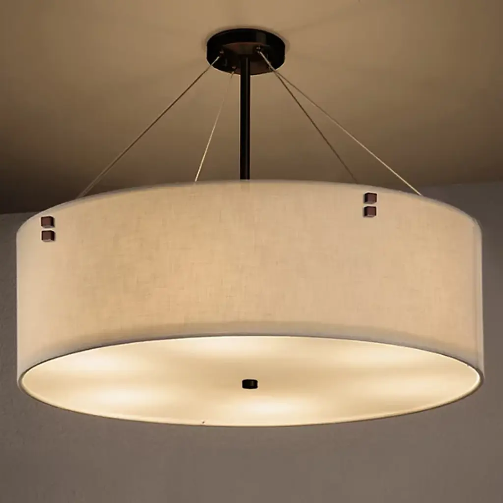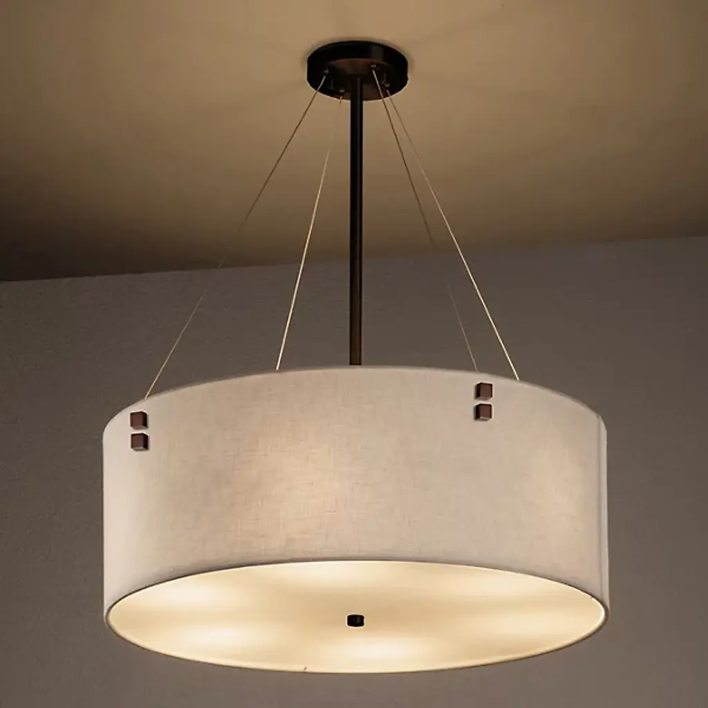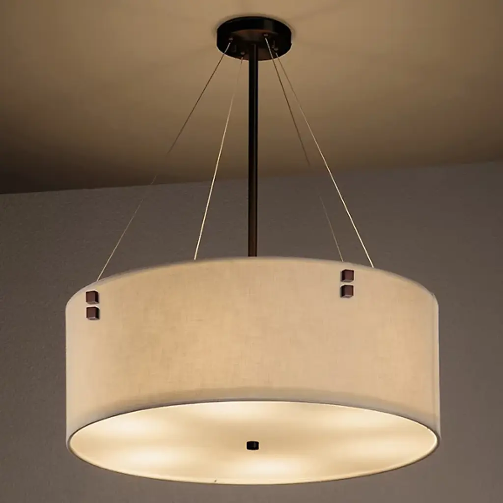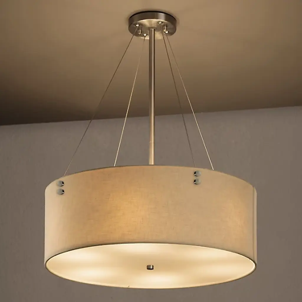Boasting graceful proportions, neutral Fabric shades and exquisite details, the Textile Finials Drum Pendant illuminates any space with casual elegance. Adorned with fashionable finials, the signature Fabric shade offers a visual and textural indulgence. Each pendant includes a 4-piece rigid stem kit for length adjustment with a 360-degree ball swivel at the canopy for straight hanging.