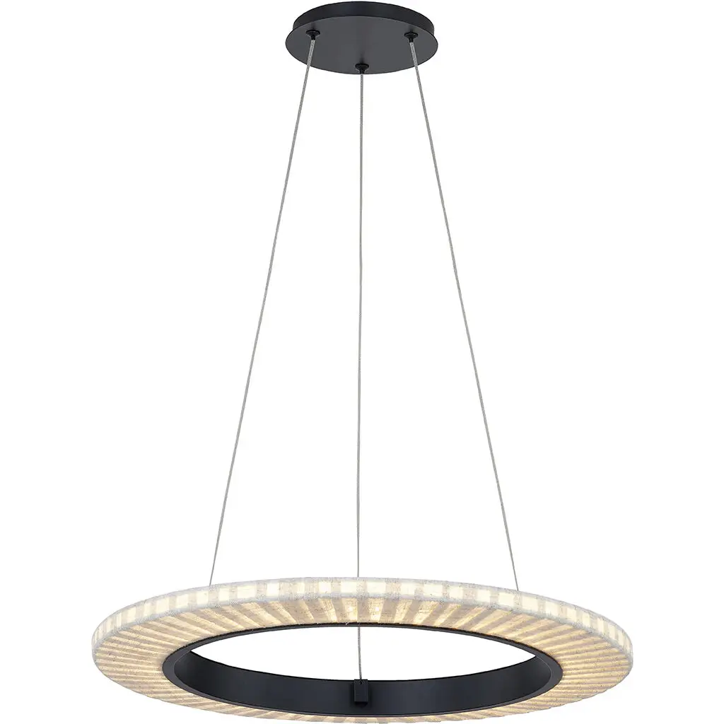 Textile Led 24 Inch Matte Black Pendant Ceiling Light In Cream Linen Fabric