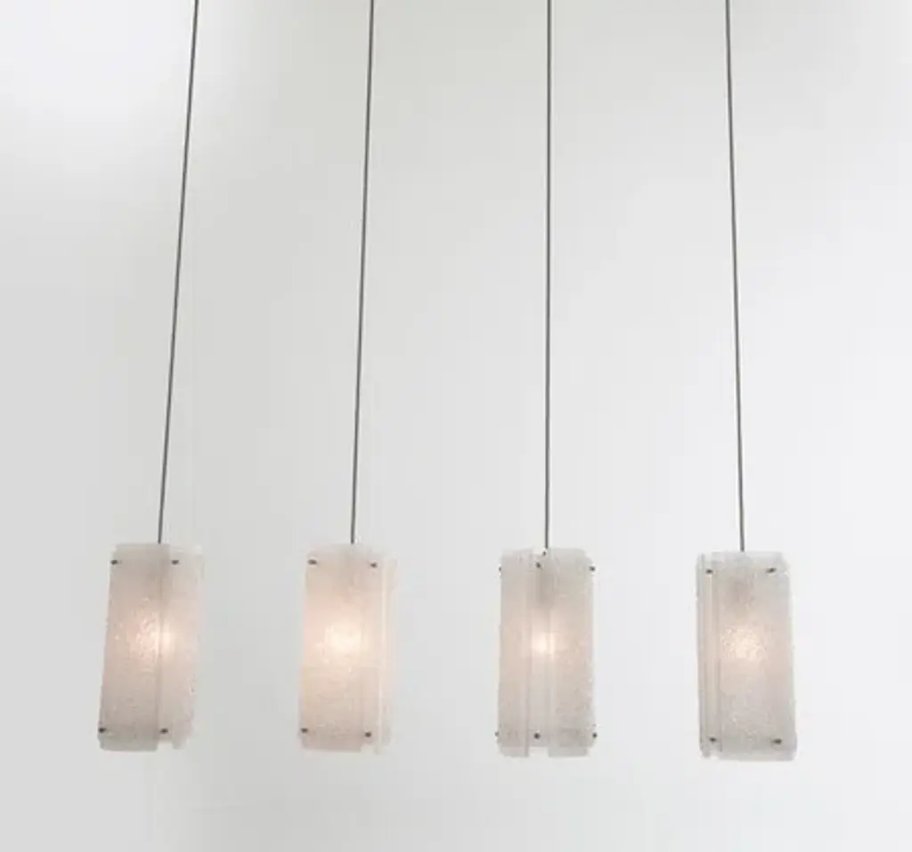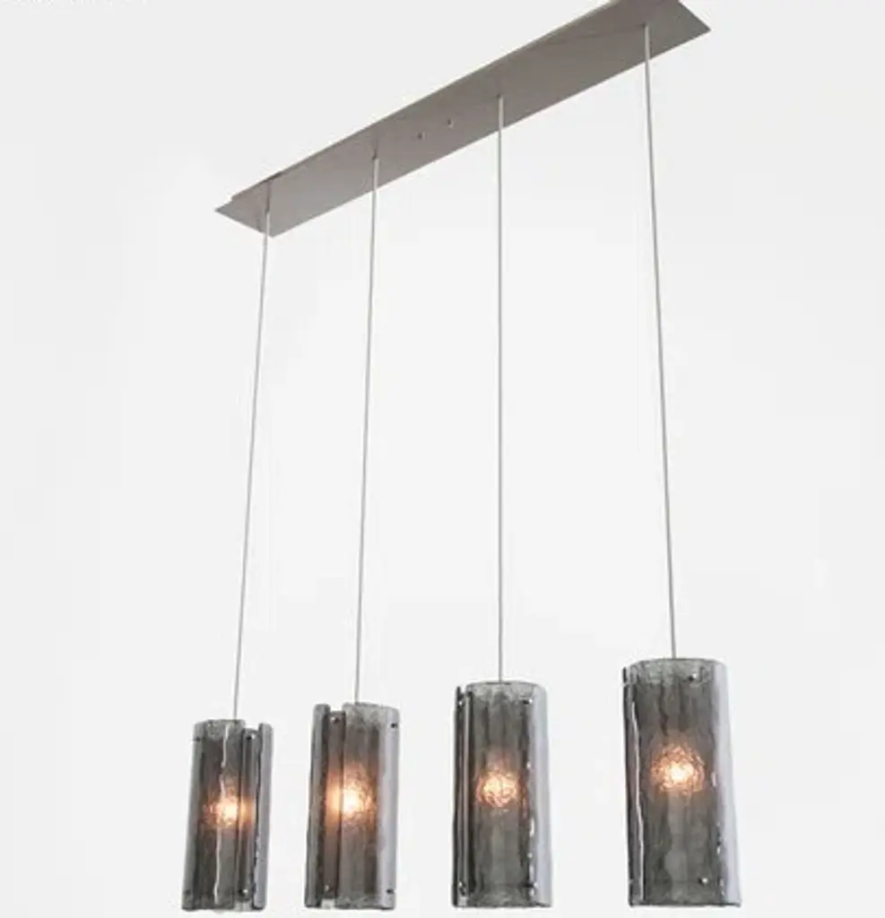 The understated elegance of this pendant. Its textured glass design adds a layer of sophistication, making it an ideal centerpiece for your kitchen island or dining area. The pendant accommodates four lights, offering ambient illumination that can be dimmed to set the perfect mood. With an adjustable height and sloped ceiling adaptability, it fits seamlessly into a variety of settings. Plus, its versatile design is complemented by multiple finish options, ensuring it blends effortlessly with your decor.