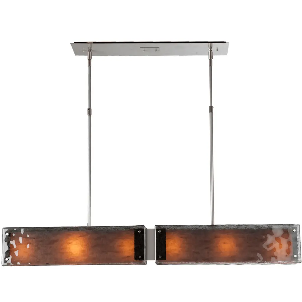 Textured Glass Linear Suspension-56-Novel Brass-Granite Glass - Frosted-Threaded Rod Suspension-E26