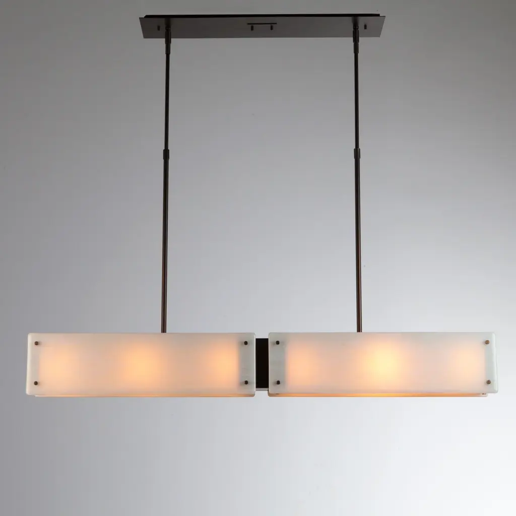 Textured Glass Led 44.4 Inch Matte Black Linear Pendant Ceiling Light In Frosted Granite, 2700k Led