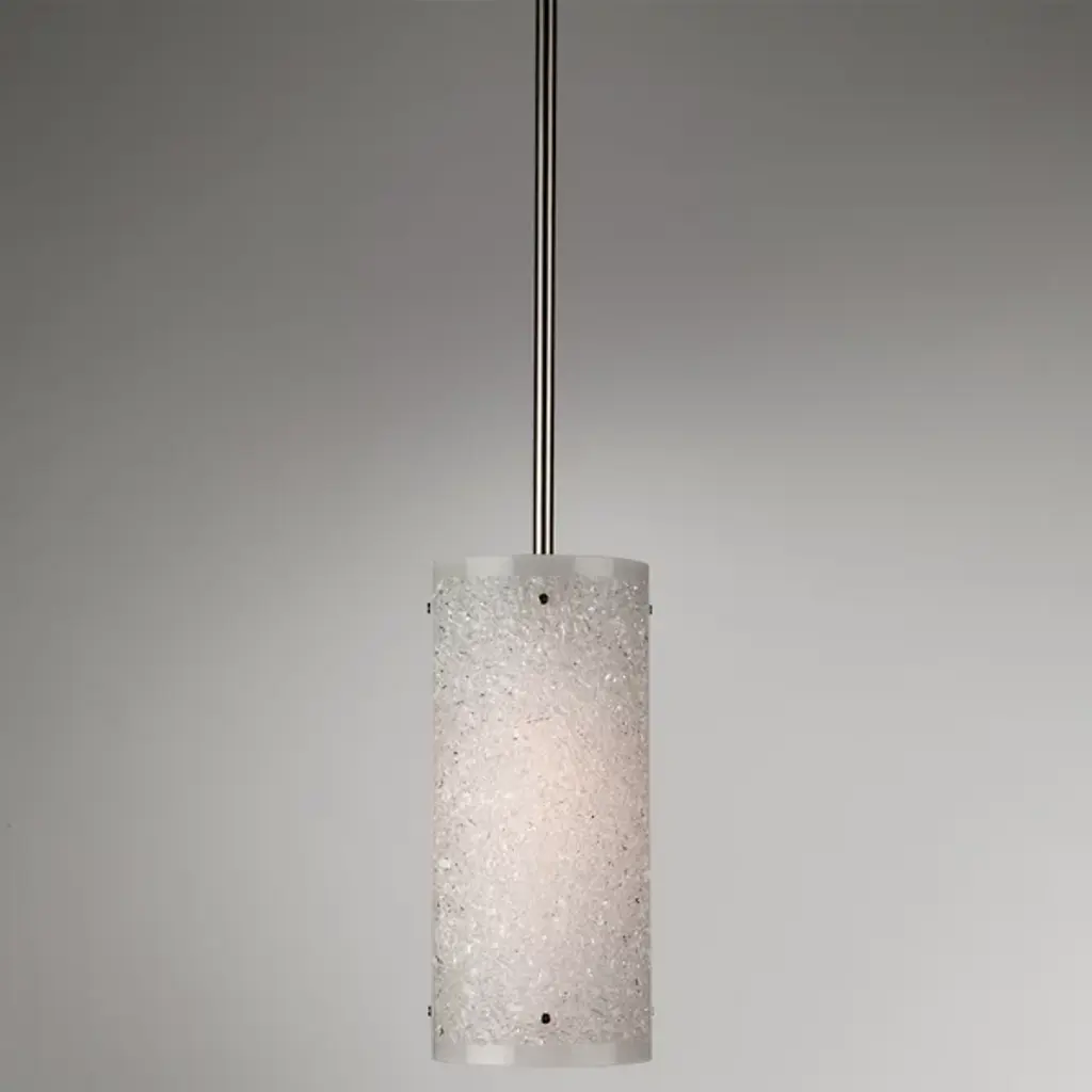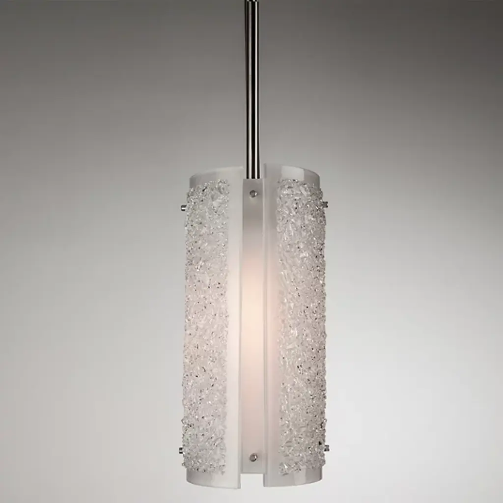 A sophisticated piece bringing dining rooms an inviting presence. On its own or in sequence, the Textured Glass Mini Pendant from Hammerton Studio marks a destination point, one seasoned with a scattering of rustic texture. Inspired by various organic patterns, its glass shade captivates with a texture applied by Hammerton artisans. Turn on the piece and watch as the glass comes to life with a light-painted surface. Let it hang in the air with the sleek figure of its metal tubing.