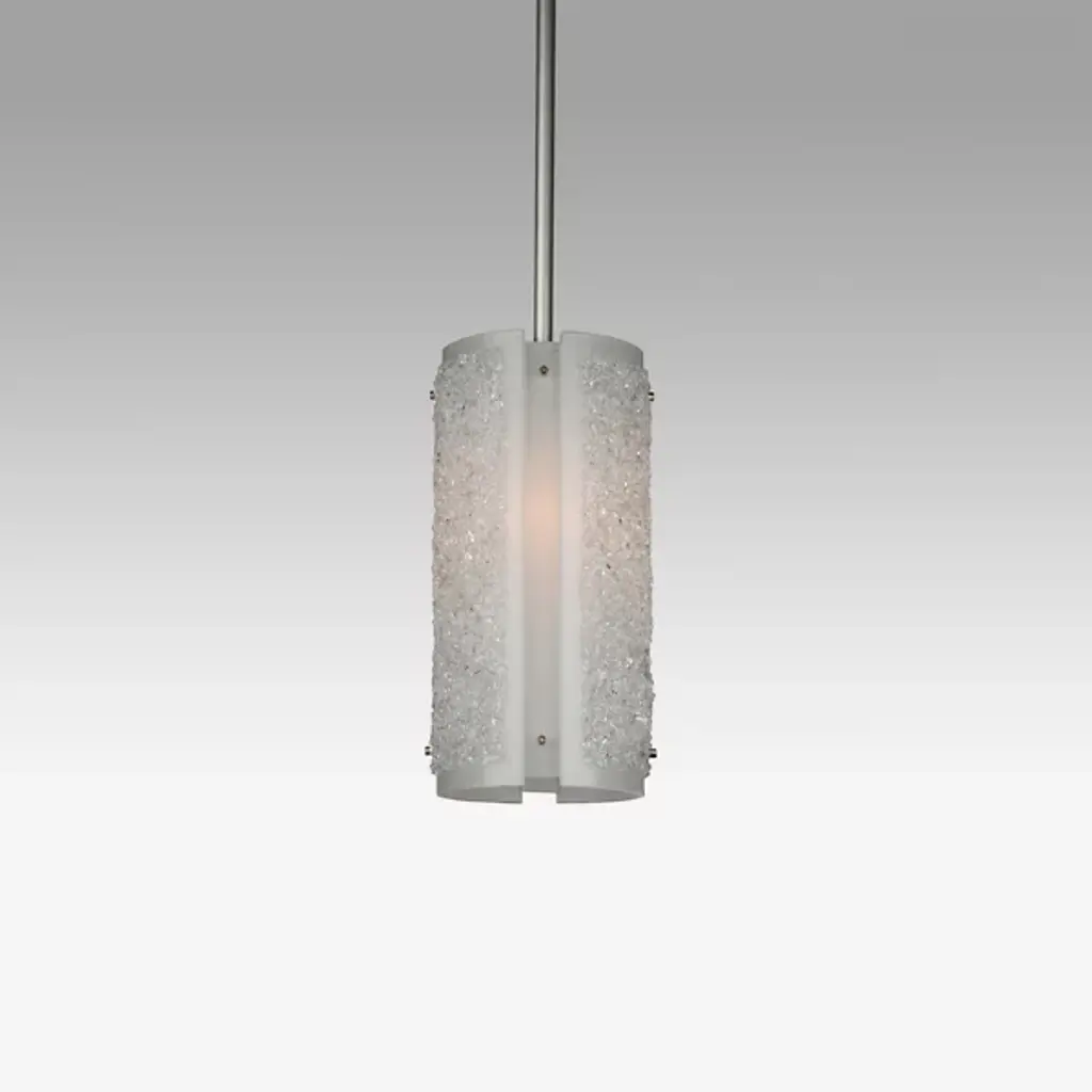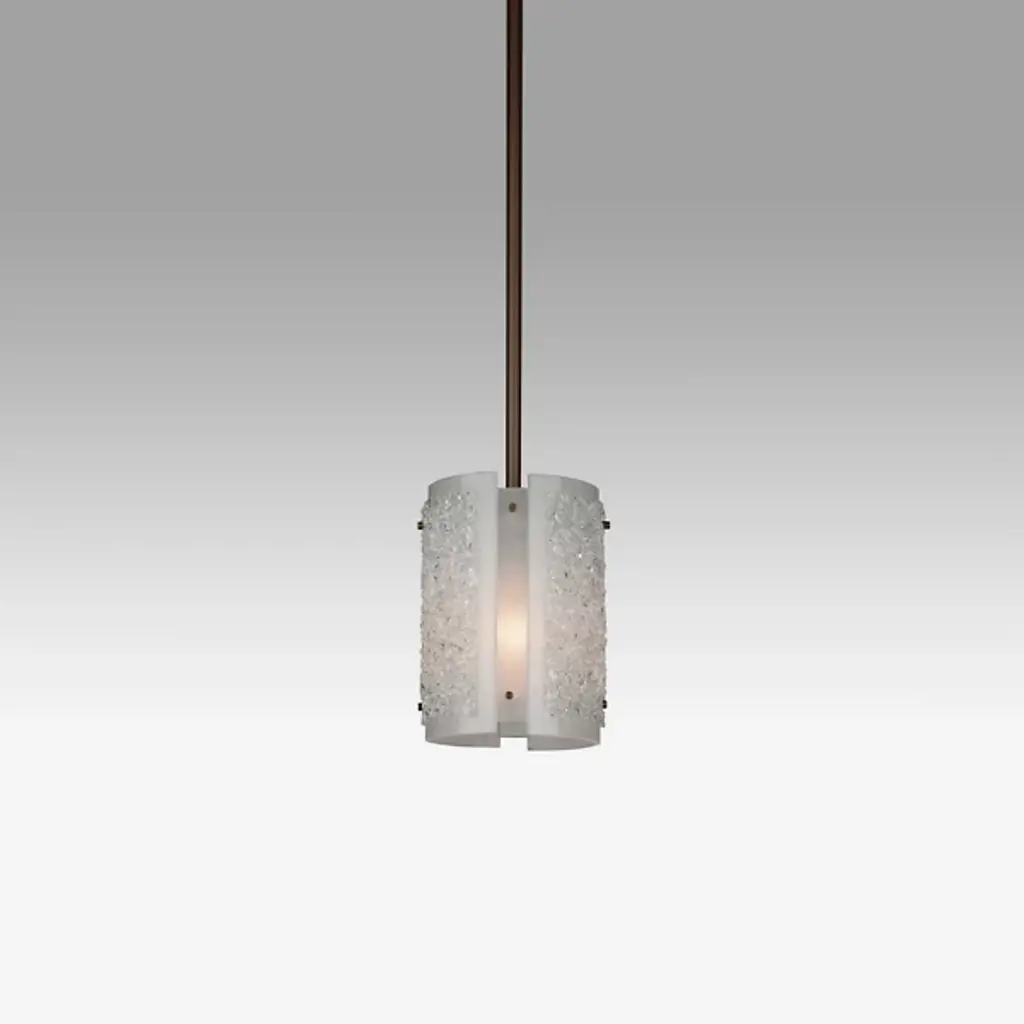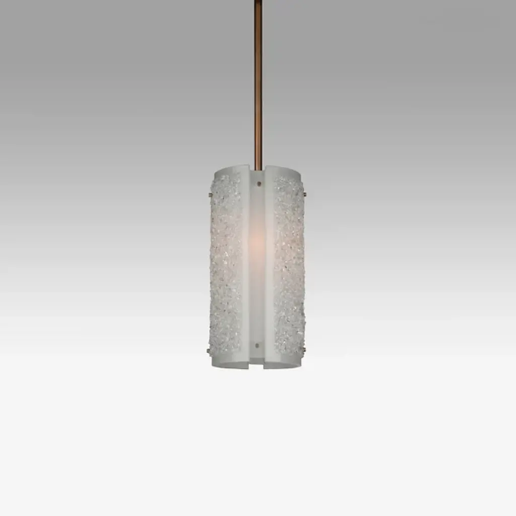 A sophisticated piece bringing dining rooms an inviting presence. On its own or in sequence, the Textured Glass Mini Pendant from Hammerton Studio marks a destination point, one seasoned with a scattering of rustic texture. Inspired by various organic patterns, its glass shade captivates with a texture applied by Hammerton artisans. Turn on the piece and watch as the glass comes to life with a light-painted surface. Let it hang in the air with the sleek figure of its metal tubing.