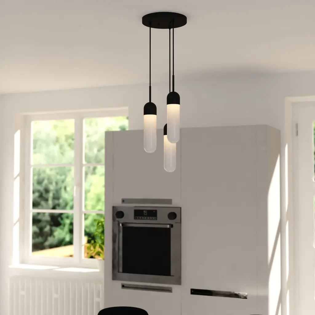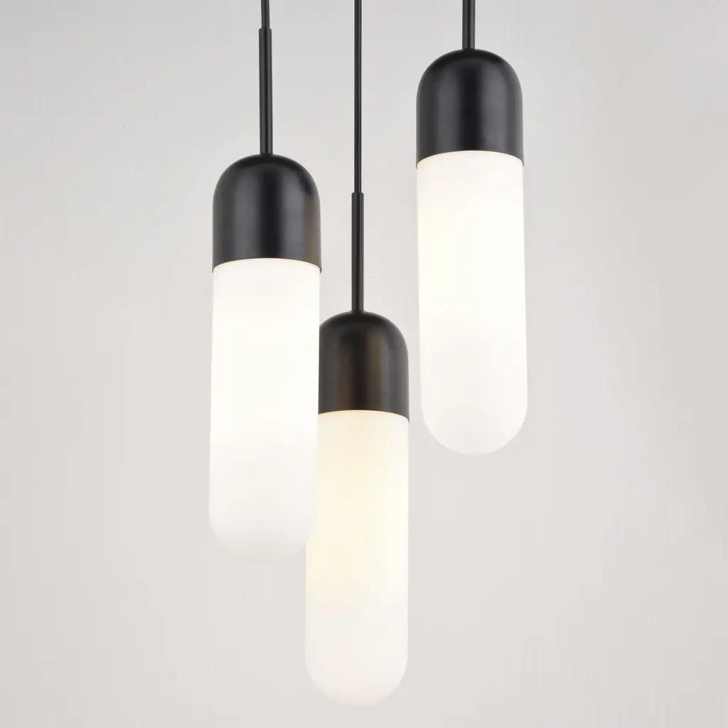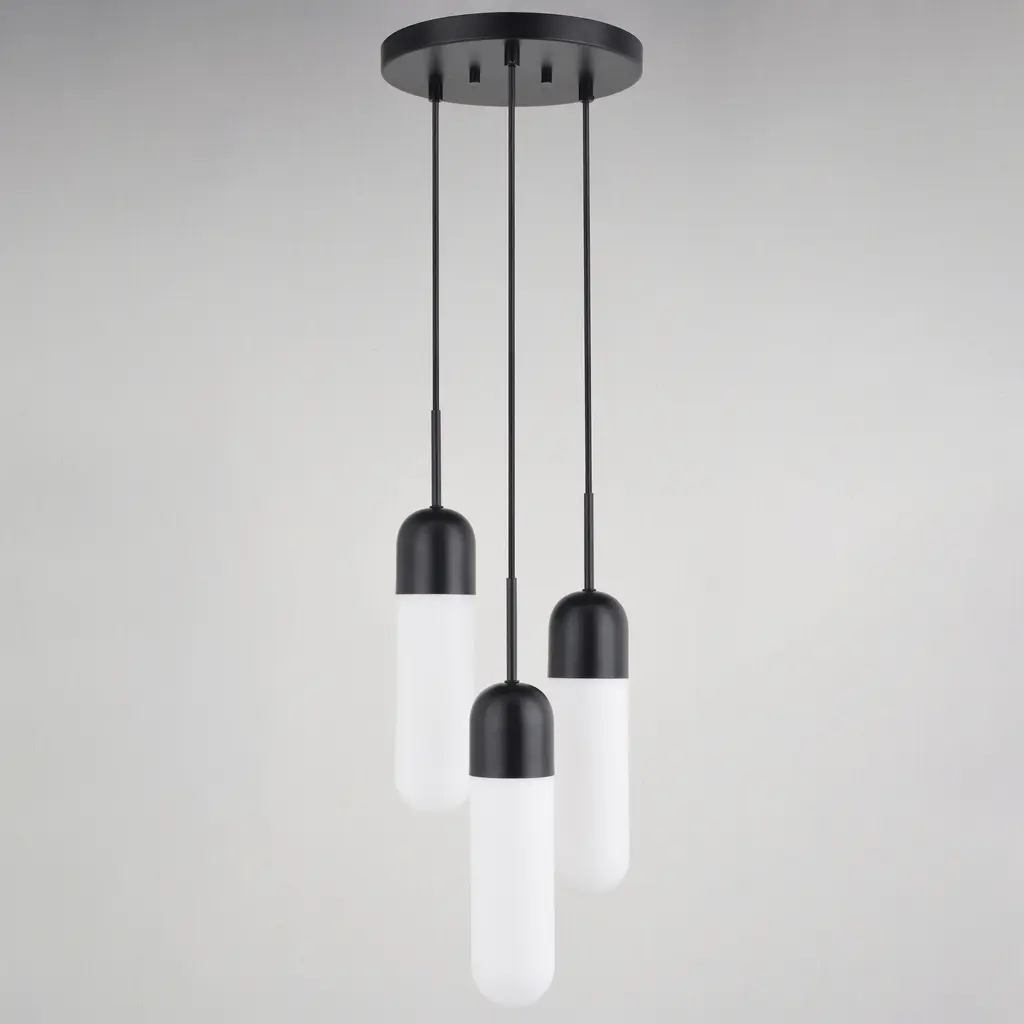 The Thalia 3 Light Pendant is a modern masterpiece for adding a playful sophistication to your foyer, dining or living rooms. Its unique pill-shaped design with matte black finish and soft white glass, provides a versatile aesthetic that will complement your contemporary, mid-century modern or even transitional style. The Thalia Pendant is the perfect focal point for living spaces that crave a touch of modern whimsy.