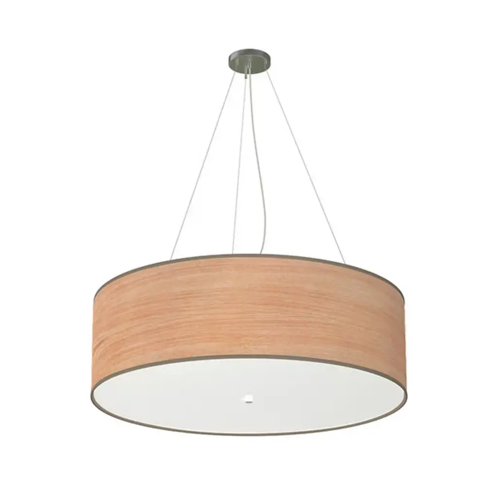 Simple, adaptable, and sophisticated. The Thao Grande Pendant by Seascape Lamps offers everything you want in a modern lighting fixture. A disc ceiling mount supports the fixture, with slender aircraft cables allowing it to hover elegantly above. Its smooth drum shade is enclosed with a frosted acrylic diffuser, concealing its lamping and softening its light for ample and glare-free illumination. This fixture suits any residential or commercial space with ease.